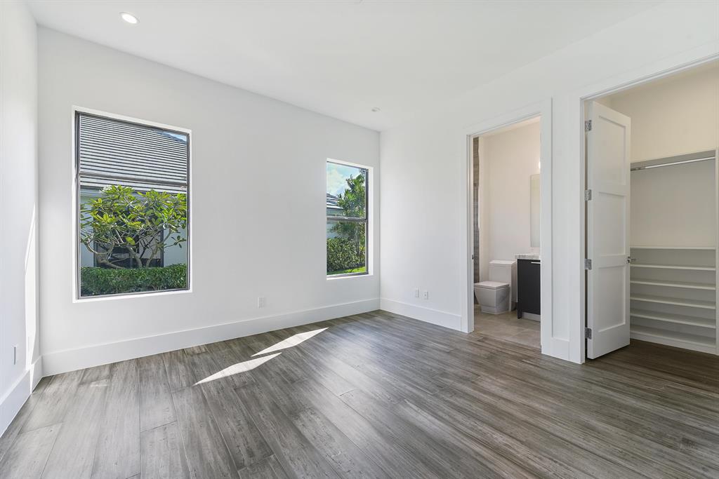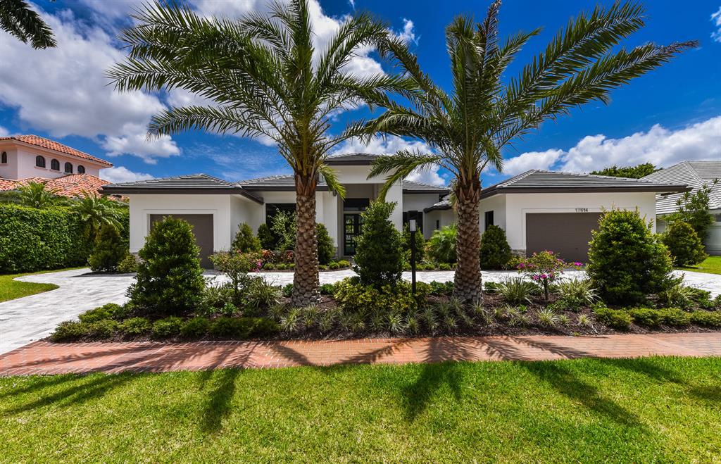 NEW CONSTRUCTION. One story 4 bedroom 6.1 bath on panoramic golf course lot. Featuring spectacular contemporary architectural elements. Beautiful porcelain floors and custom cabinetry reflect the quality craftsmanship and attention to detail. A living room, dining room, Chef's kitchen with state of the art appliances and oversized center island and a large family room are all designed for effortless entertaining or casual living. The master wing includes a grand master suite with luxurious his and her baths and generous and beautifully appointed closets. Also included are an office and a home theater or game room. The lushly landscaped property features a dramatic resort style pool and spa and covered loggia. Other features include hurricane resistant windows and doors, full house