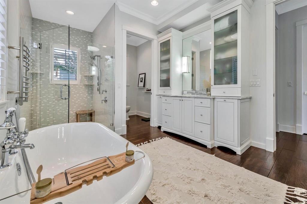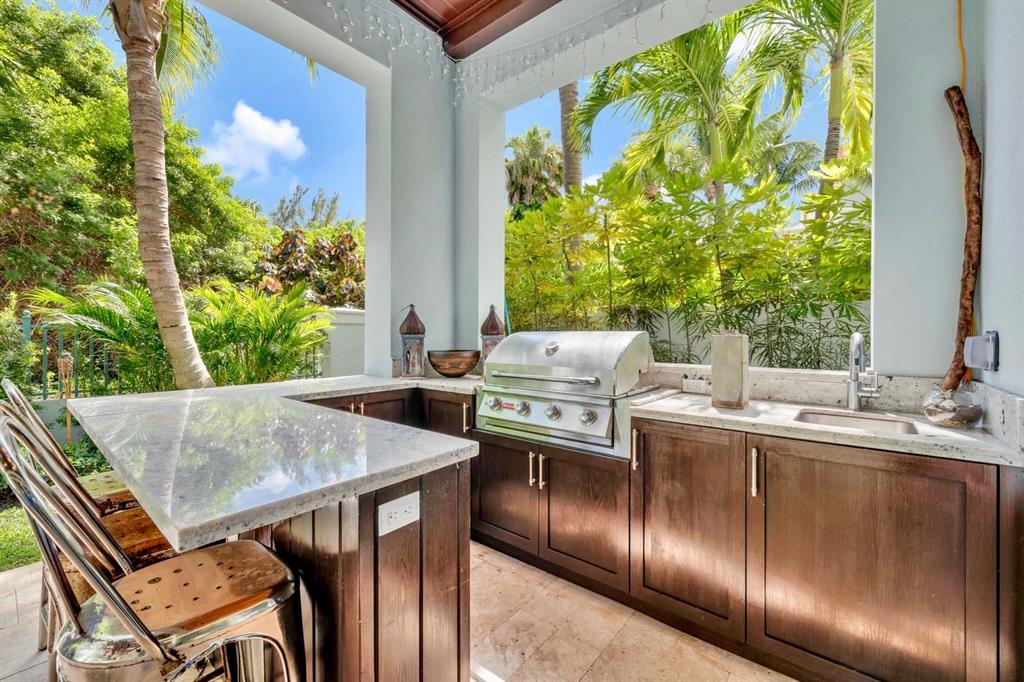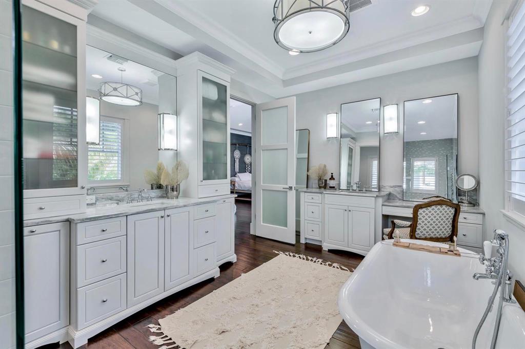 THE ULTIMATE LIVING EXPERIENCE. Elegant seaside home, half a block to a private, gated and deeded beach access. This magnificent home designed by Randy Stofft features many custom architectural details exuding the feeling of a tropical paradise. This stunning 4 bedroom, 4 bathroom with den coastal home offers an expansive Chefs kitchen with Italian Calicatta countertops and custom ceiling height cabinetry and millwork throughout. Soaring 12 foot ceilings on main level invite bright natural light into the open floorpan leading out to a salt chlorinated pool and outdoor kitchen with Travertine patio and private landscaped yard with room for entertaining. Large master bedroom suite with terrace, walk-in closets featuring custom cabinets. Master bath with oversized shower and Roman tub.