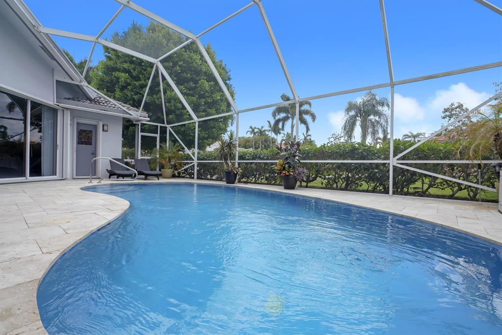 There's nothing like a sleek modern home that boasts clean lines and expansive windows. HARD TO FIND IN LA CORNICHE! This home is all on ONE LEVEL with NO STEP DOWNS !! NO POWER LINES! Step through the new decorator hurricane impact double front doors into 1,000+ sq ft of clean, bright, open living space! Volume ceilings and abundance of light, great for your treasured Art work and lots of parties! Newly renovated Kitchen with modern Ultracraft cabinetry, quartz countertops and matching LG appliances. Double sinks, double ovens, pots/pans drawers, low noise dishwasher and large pantry with roll outs. Master bath is a SPA-LIKE DREAM! Luxuriously appointed with stand-alone soaking tub, floating vanities and huge frameless barn-door glass shower. Pool has been newly refurbished. See More...