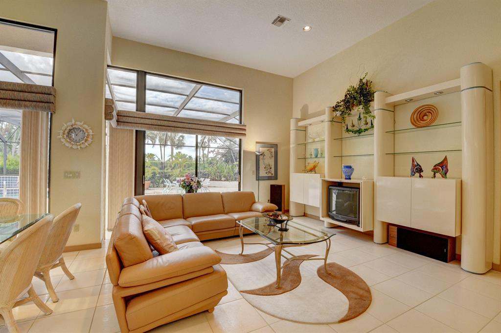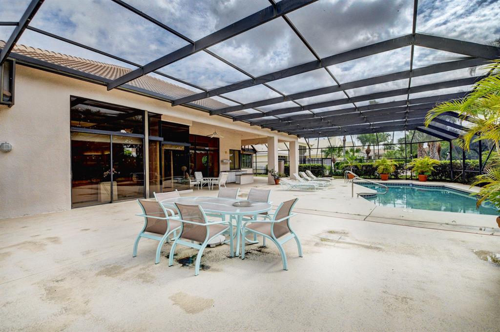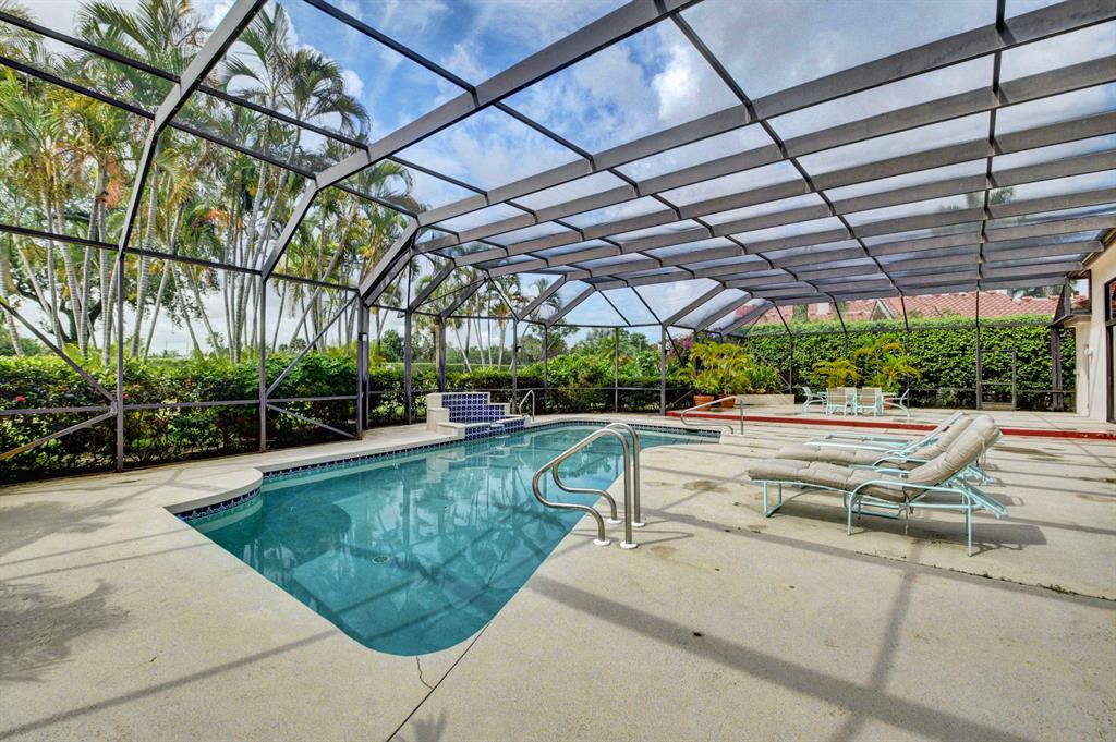 Situated on a golf view lot in Boca's highly desirable gated Bocaire Country Club. This bright airy home boasts over 3800 sf of living space. Soaring volume ceilings, walls of windows. An entertainers delight with a formal dining room donned with stylish lighting, wet bar, walls of windows, custom built-ins, large eat -in ktichen with abundance of cabinets, island , pantry, sunny skylight. Graciously proportioned bedrooms including a luxurious master bedroom, cabana bath opening to a resort style screened pool overlooking the golf course. Bocaire is an exclusive boutique country club lifestyle with resort style amenities. Renowned brand new championship golf course with no tee times. Active golf and tennis programs, state of the art fitness center and stunning aquatics center including a