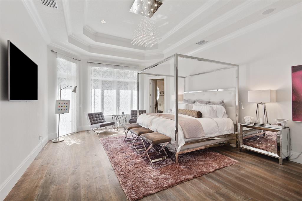 Exquisite 5 bedroom, 6.5 bath plus office estate located in the man-gated community of Woodfield Hunt Club. The large chef's kitchen features professional grade Sub-Zero and Thermador stainless steel appliances with a propane gas range, chef's island, double oven and double dishwashers. The first floor master suite features soaring ceilings, his and hers bathrooms, motorized drapes, and custom closets. Custom built-in office also on the first floor. Head up to the second floor to the spacious loft and 4 more bedrooms. Step outside to the alluring backyard with built-in grill, covered patio, and pool with spa. Additional upgrades of this home include full impact glass, a fully integrated Savant system, Eco-smart fireplace and projection TV in the family room;...