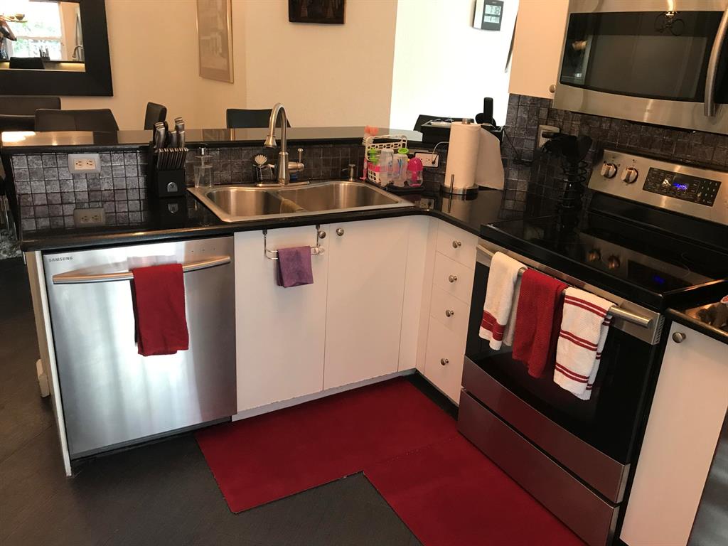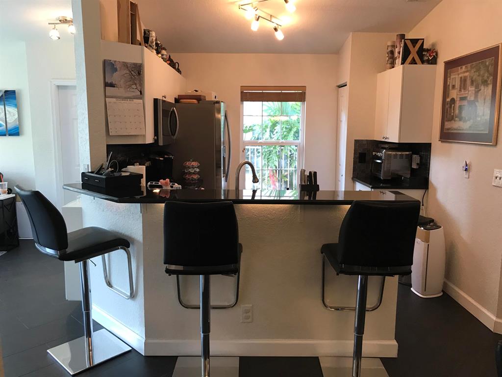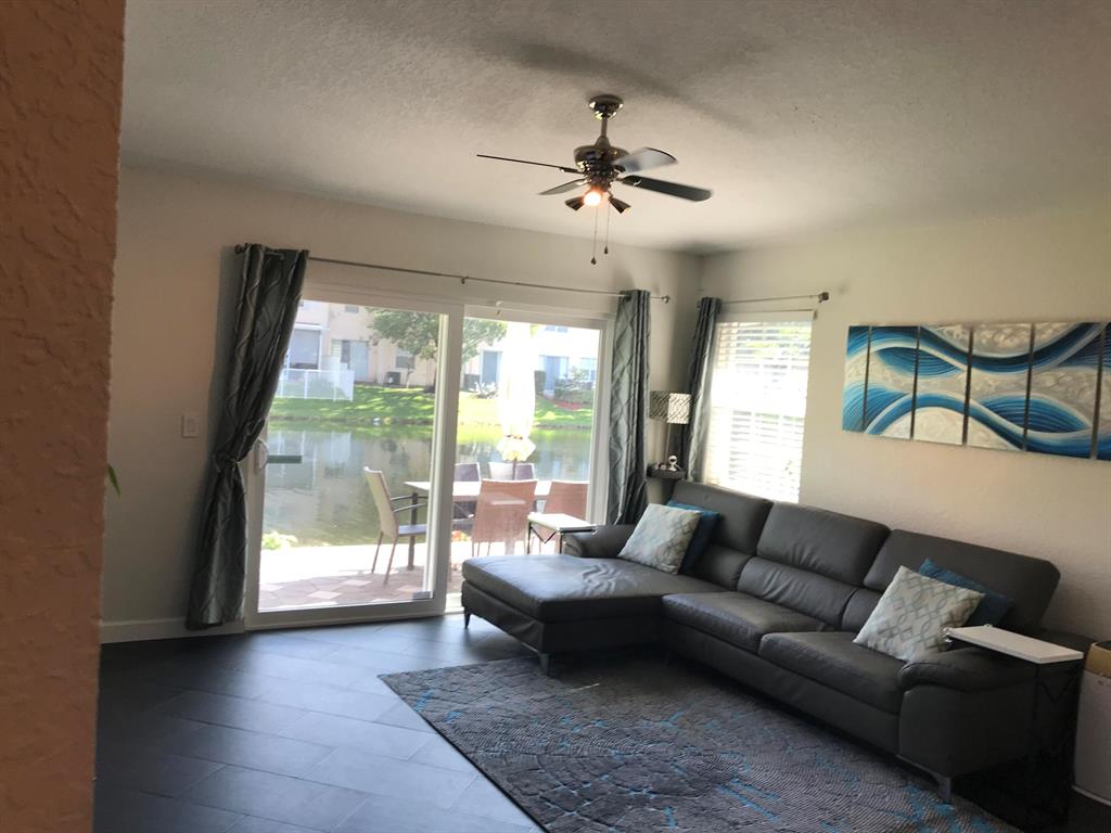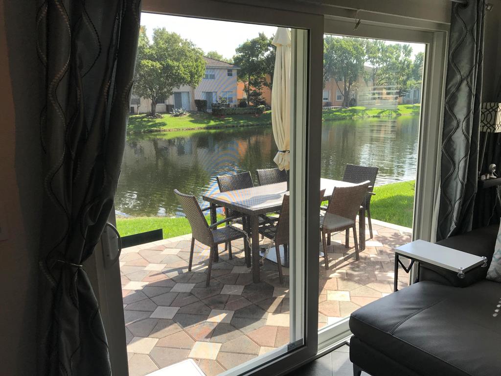 Gorgeous, completely remodeled, 3/2 villa in quiet gated community. Tranquil lake view with new paver deck in back, great for relaxing & entertaining. Complete hurricane windows with 24 x 12 Italian tile throughout. Stainless-steel appliances, granite counter tops & glass-tile back splash in kitchen. Master bath has extra-deep bath tub/frameless glass shower & floating dual vanities. Guest bathroom has frame less walk in shower with pebble floor. Brand new washer/dryer. Other features include: Built-in cabinets with custom stone wall & added rain gutters. Villa is located between two parks, close to shopping, restaurants & major highways. Community has 2 lakes, 2 pools, security cameras & new playground. Low HOA fees include home alarm system. A must see immaculate property!