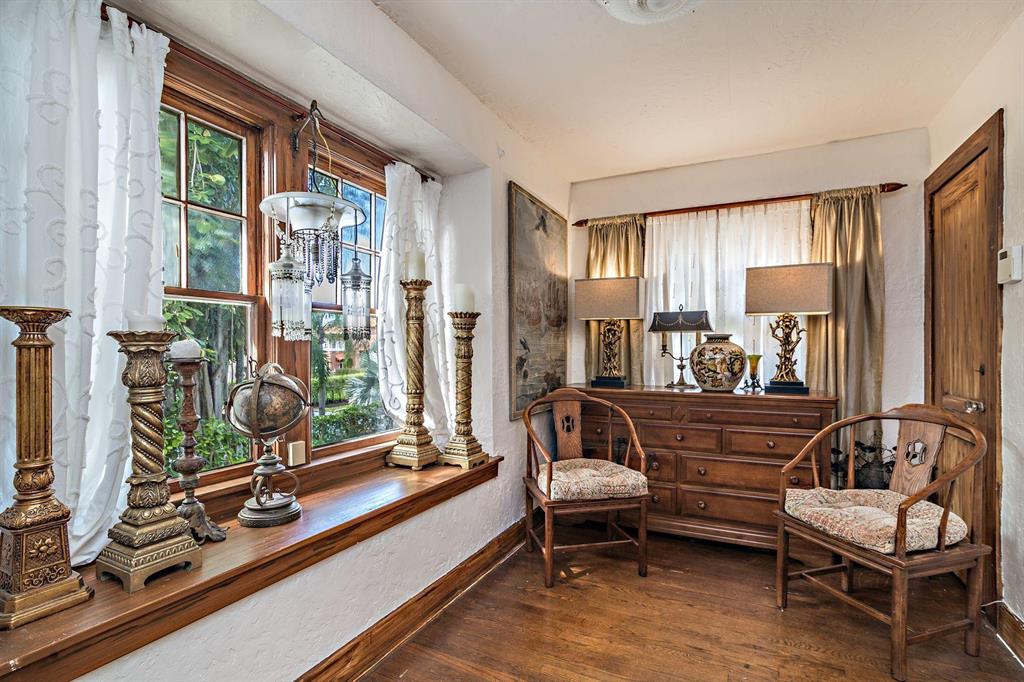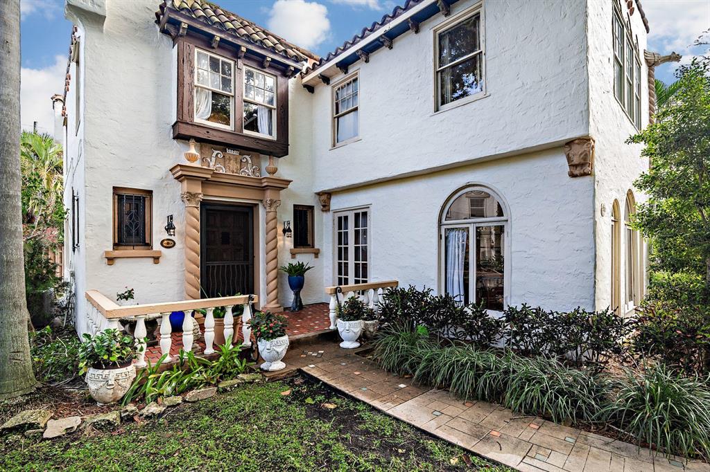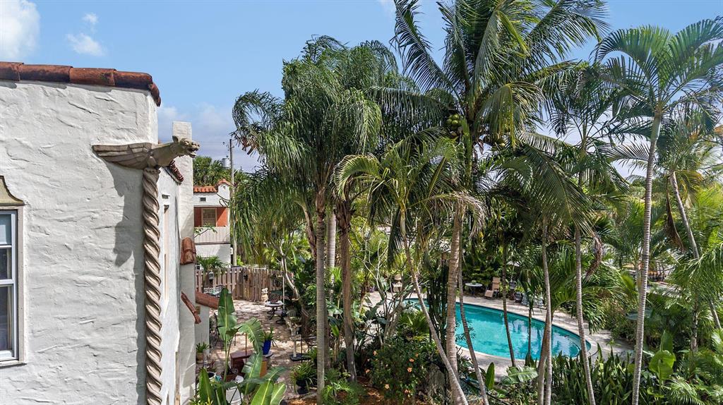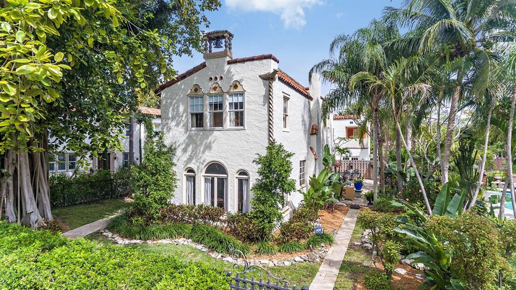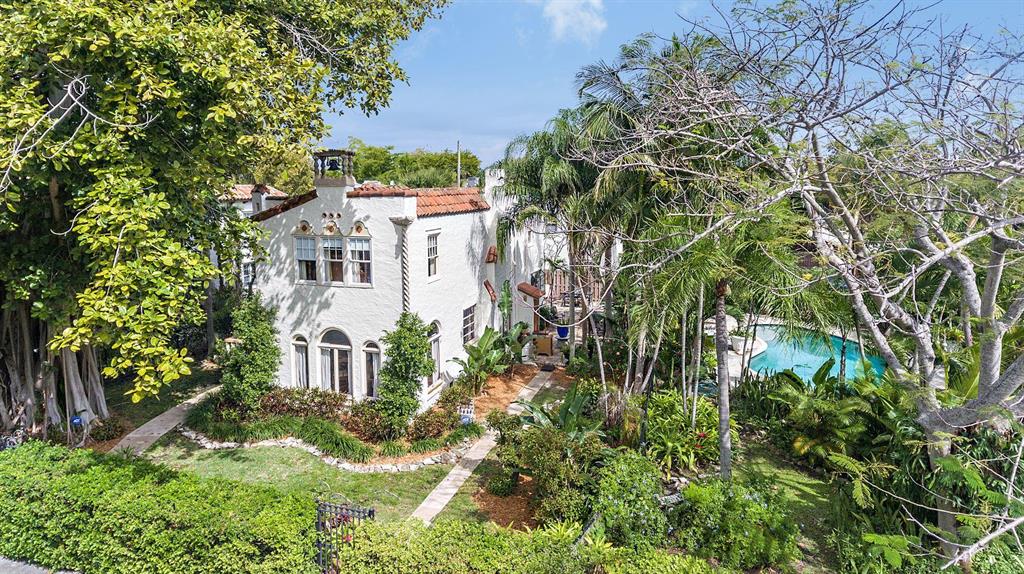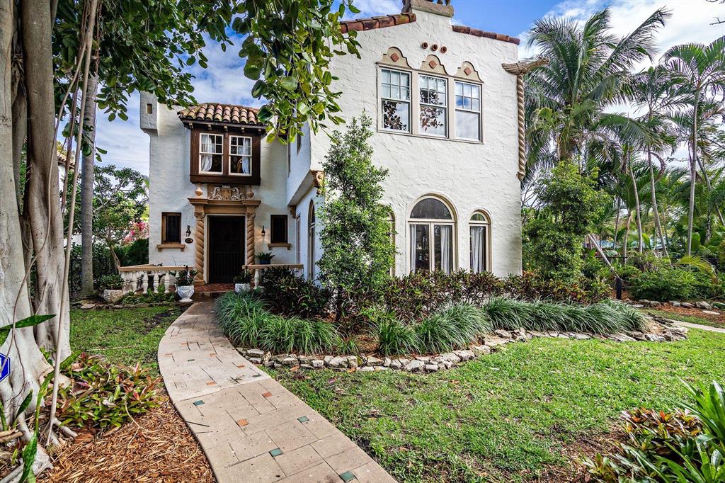 Exquisite, John Volk ''Villa Mimosa'' located on a private corner lot in the heart of Old Northwood. This West Palm Beach treasure is one of 5 historically significant homes designed by Volk at the young age of 25. The moment you approach the property you are taken back to the early days of Florida with amazing architectural details including an original gargoyle overlooking the southeast lawn and pool. As you enter the foyer you're greeted by a stone open staircase with open arched walk-ways. Other original details include pecky cypress doors, window frames and ceiling beams; hardwood floors, a stone mantel fireplace and formal dining room surrounded by large windows allowing beautiful views of lush landscaping.