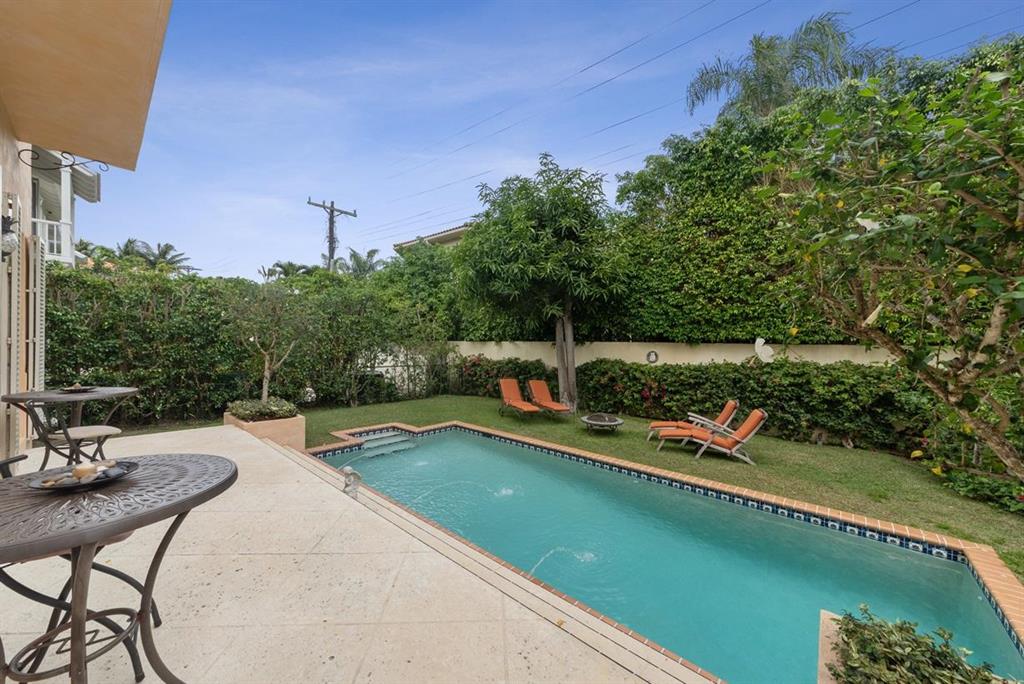LOCATION is everything! Walk to Palm Beach restaurants, minutes to the exciting Royal Poinciana shops, 2 blocks to beach and Intracoastal and bike trail! Sunny lot for this single family house with custom detailing. High beamed ceilings, Mexican tile throughout the first floor! 3 bedroom, 3.5 bath (1 master up with ensuite office) another full library/den downstairs too! Heated Gas pool.