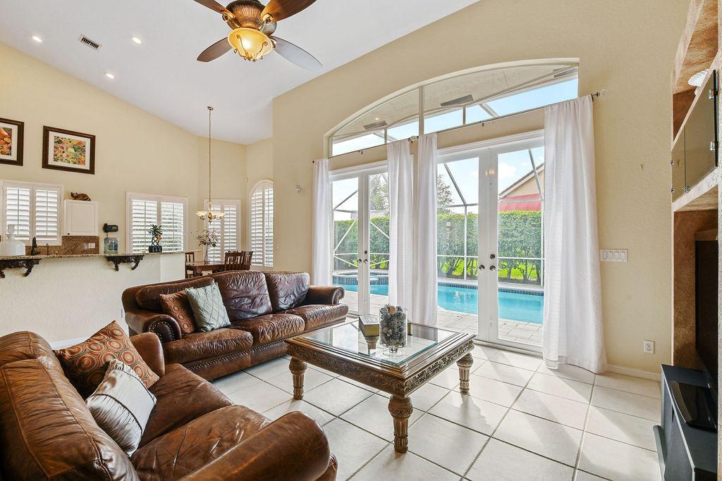 Stunning home in highly sought-after Lexington Estates. This beautifully upgraded Pimlico model has 3-Bedrooms + Den/Office + Large Loft + 2-Full Bathrooms + 1-Half Bathroom and the most desired floor plan in all of the community. Kitchen is well appointed with white cabinetry/Granite Countertops/separate prep Island/Bar Counter Seating and additional eat-in area that easily seats six. Hurricane Impact resistant French doors; Pool & spa recently Diamond-Brighted and entire patio recently resurfaced; Child safety fence around pool; Dual-Zoned Central A/C system; Wired for Full-House generator; Elegant designer touches throughout. *A Rated Schools. Low HOA of $281/month! HOA includes front/back/side yards lawn & landscape maint.; Sprinkler maintenance.
