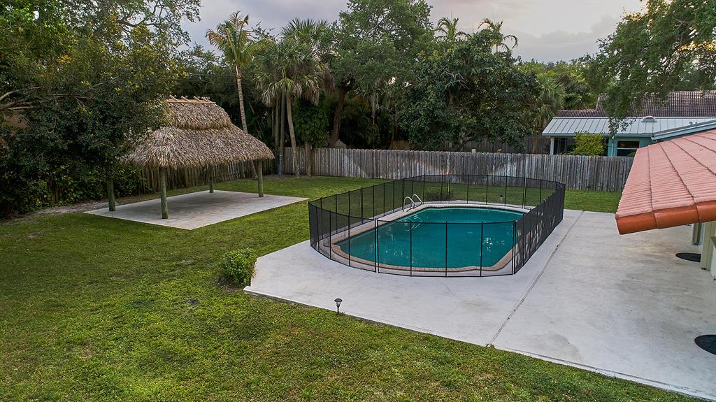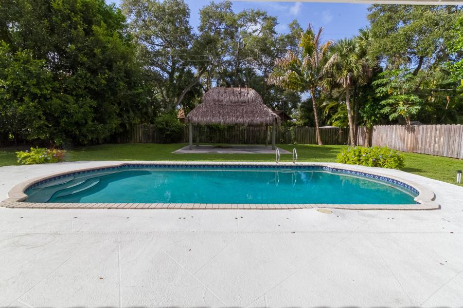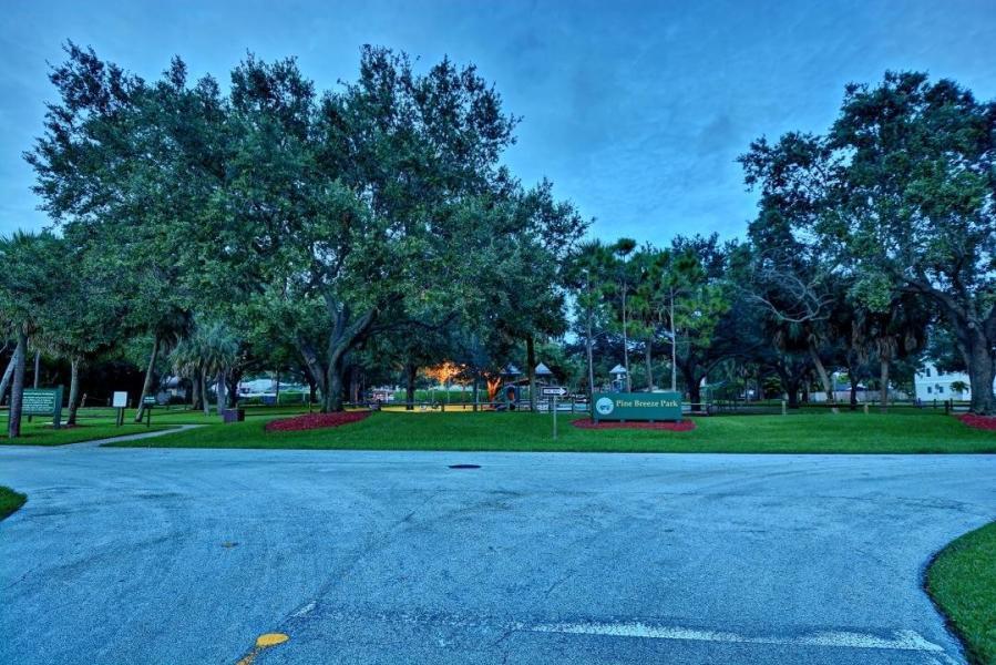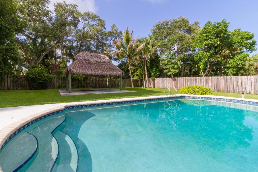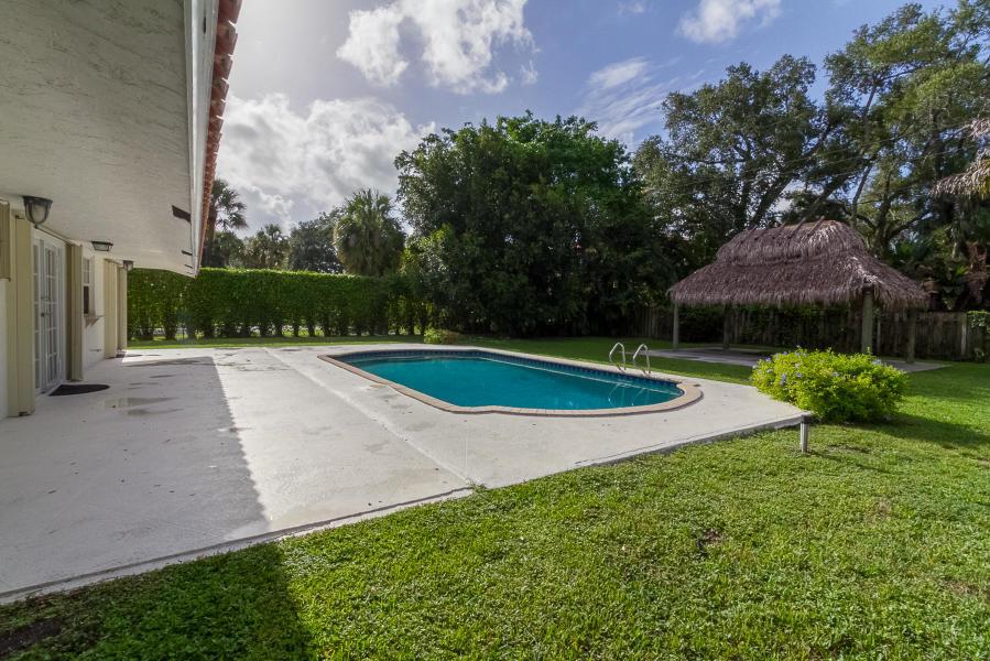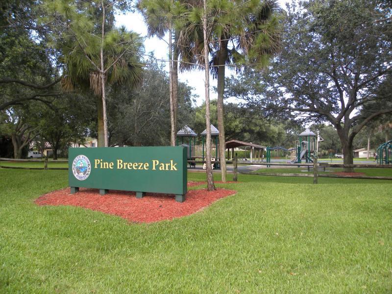Rarely available Location '' Directly next to Pine Breeze Park!'' Charming family home on a Large Lot with 3 bedrooms/2 baths ~ Updated bathrooms & spacious kitchen with stainless steel appliances & plenty of cabinets ~ Travertine floors in the living areas / bedroom floors have hardwood ~ Plantation shutters on all windows ~ French doors to patio ~ Two large walk-in closets ~ Accordion shutters for full hurricane protection ~ Large fenced in yard with beautiful open pool, large Tiki Hut & preferred SE Exposure ~ Oversize one car garage ~ This is an amazing property that's move-in ready! Shows great & is waiting for one lucky family! Close to shopping, restaurants, Mizner Park, Bike to beach, All ''A'' Rated schools: Addison Mizner Elementary, Boca Middle, Boca HS~Pride of ownership shows!