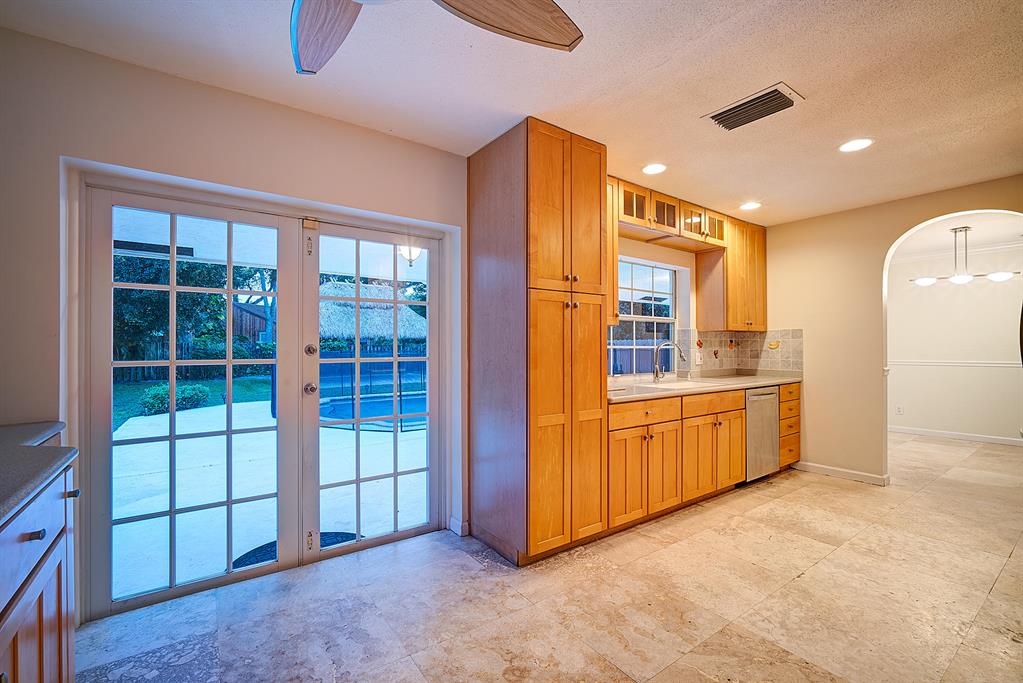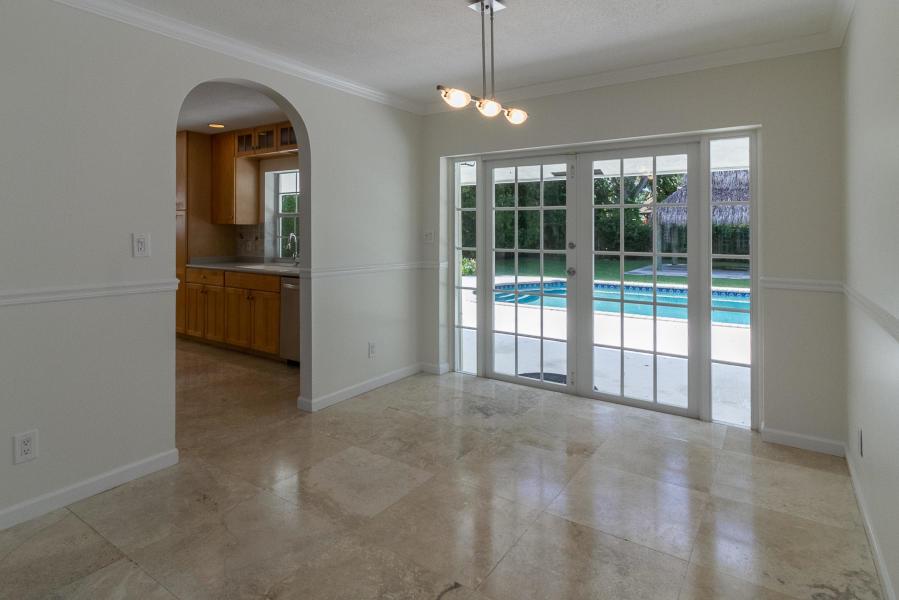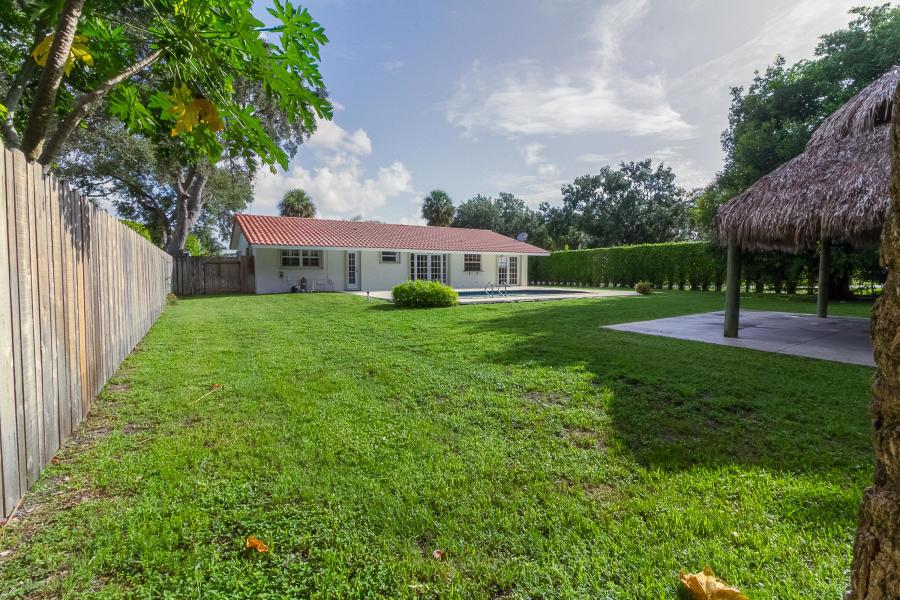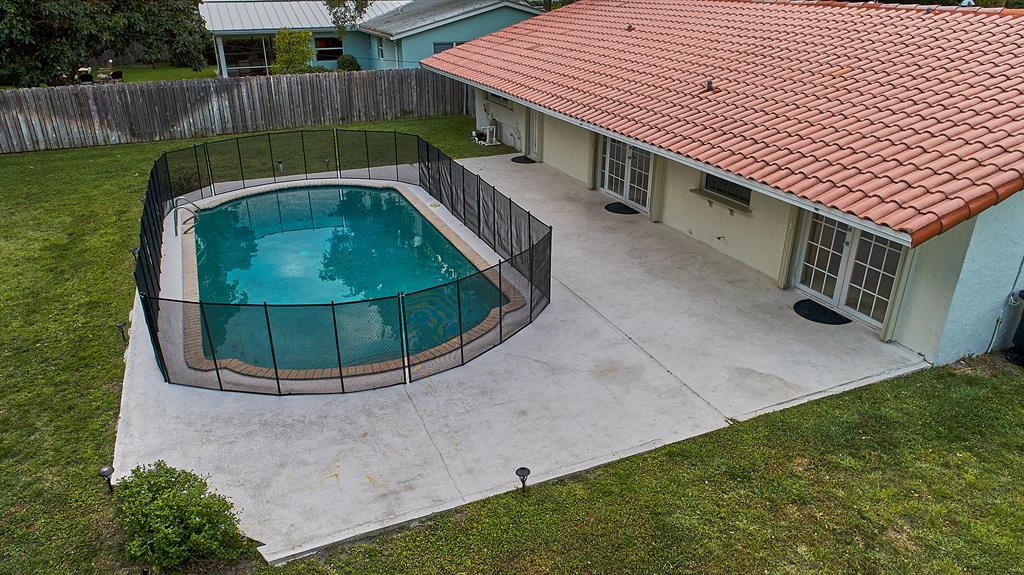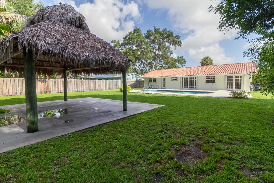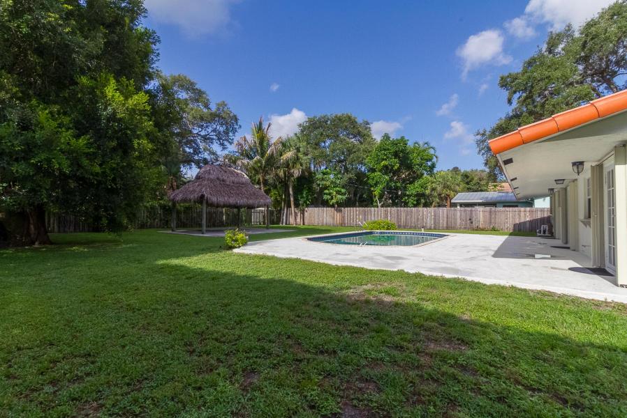 Rarely available Location '' Directly next to Pine Breeze Park!'' Charming family home on a Large Lot with 3 bedrooms/2 baths ~ Updated bathrooms & spacious kitchen with stainless steel appliances & plenty of cabinets ~ Travertine floors in the living areas / bedroom floors have hardwood ~ Plantation shutters on all windows ~ French doors to patio ~ Two large walk-in closets ~ Accordion shutters for full hurricane protection ~ Large fenced in yard with beautiful open pool, large Tiki Hut & preferred SE Exposure ~ Oversize one car garage ~ This is an amazing property that's move-in ready! Shows great & is waiting for one lucky family! Close to shopping, restaurants, Mizner Park, Bike to beach, All ''A'' Rated schools: Addison Mizner Elementary, Boca Middle, Boca HS~Pride of ownership shows!