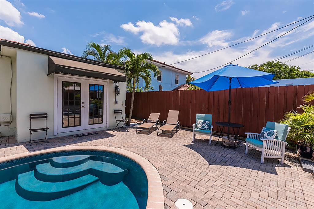 Your oasis awaits you in this Spanish style home with heated, salt water pool. Lush tropical landscaping adorns the wood door entry with ceramic tiles adding to the historic character. The open living and dining space is perfect for entertaining with gorgeous wood floors, updated fixtures, and decorative fireplace. The light and bright kitchen is fully equipped with stainless steel appliances, quartz countertops, clean modern cabinets, and custom tile backsplash. The master suite with updated bathroom features a private french door exit poolside. Don't miss the grilling and backyard bar pagoda. This perfect paradise awaits you steps from the Intracoastal waters and minutes to downtown West Palm Beach. Be a part of the Northwood community and it's candlelit historic home tours.