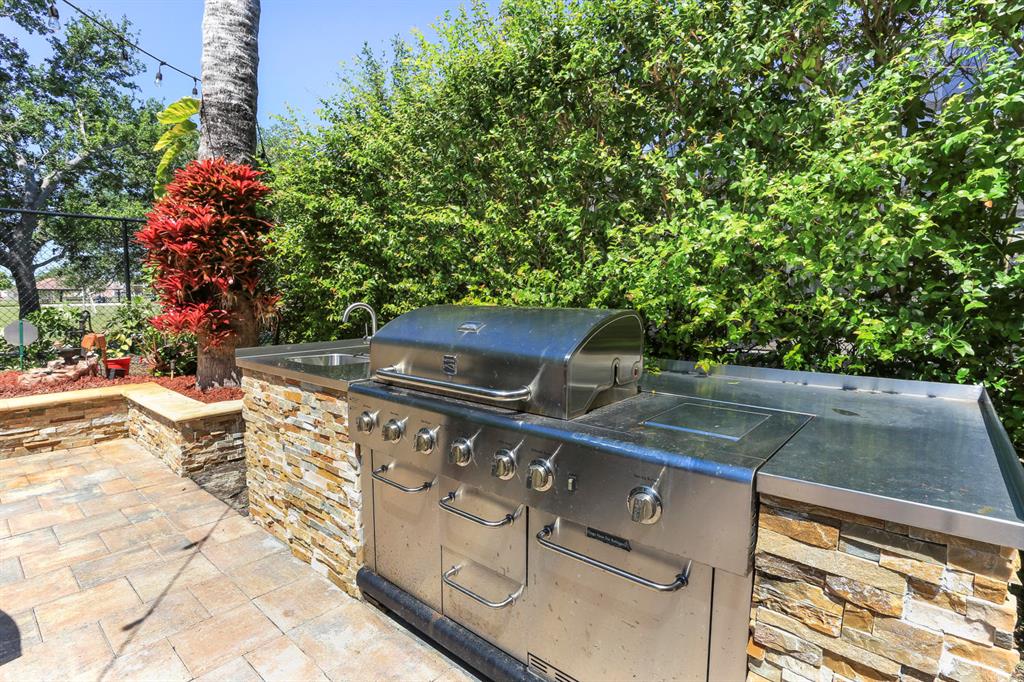This home is an entertainers delight! Executive home in West Miramar is offering an extended patio with outdoor kitchen and fire pit, impeccable landscaping, fenced yard, updated kitchen, and gorgeous modern bathrooms throughout the home. This large 5 bed/4 bath Silver Shores home boasts a custom wrought iron staircase, wood flooring throughout 2nd floor, 1st floor has ceramic tile with marble inserts, as well as a full marble bathroom on the 1st floor, 4 walk-in closets, dedicated laundry room, and accordion shutters on the 2nd floor. The master bedroom is exceptional with almost 400 sq. feet of living space, 2-walk-in closets, his and her bathroom with spa tub, vanity, and oversized shower, as well as amazing views of Silver Shores Park!