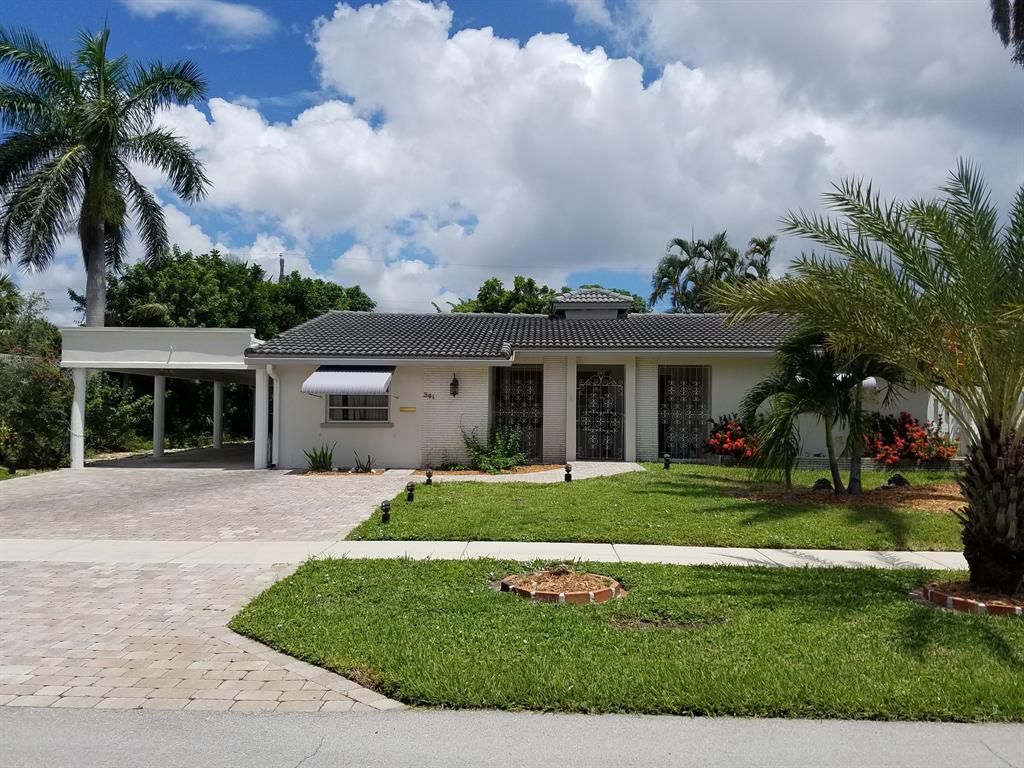 Close to all that Boca Raton offers! Mizner Park, Shopping, and Community Activities! This home has lots of possibilities! Large Bonus Room in front of home off carport that can be used as 4th bedroom, family room or storage. Large back patio with walk up counter/bar at kitchen. Extra solid concrete block storage building off carport, ideal for workshop or safe general storage.