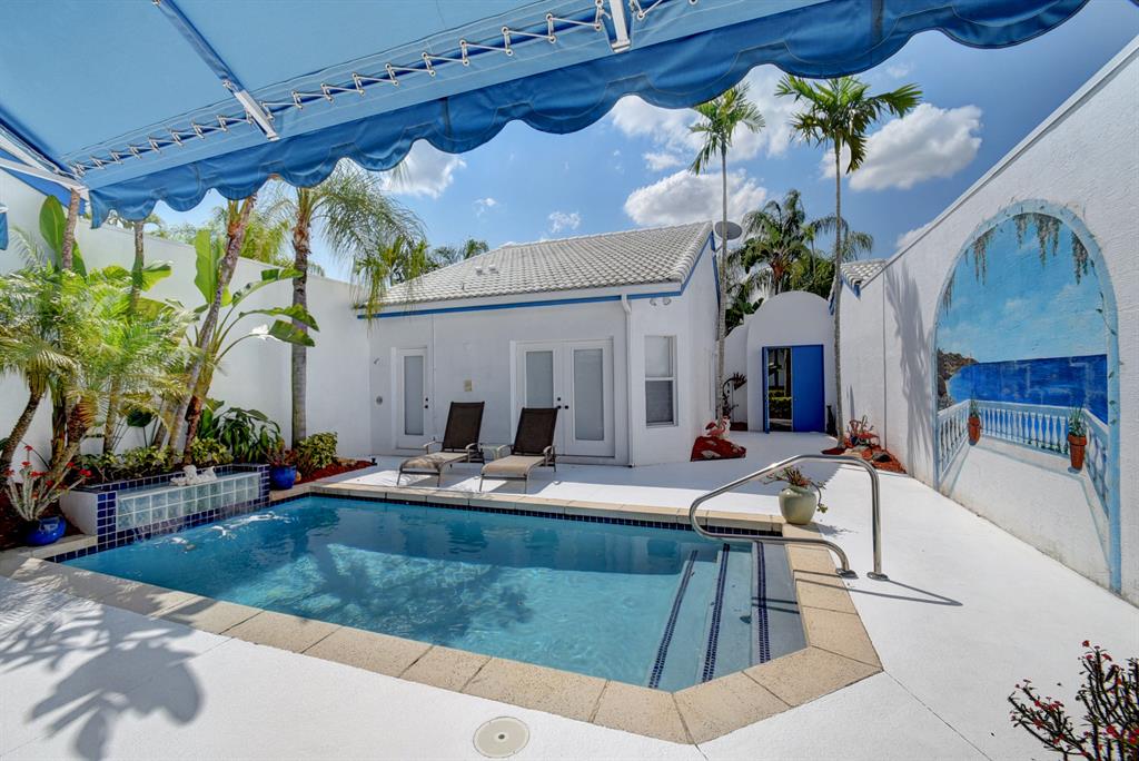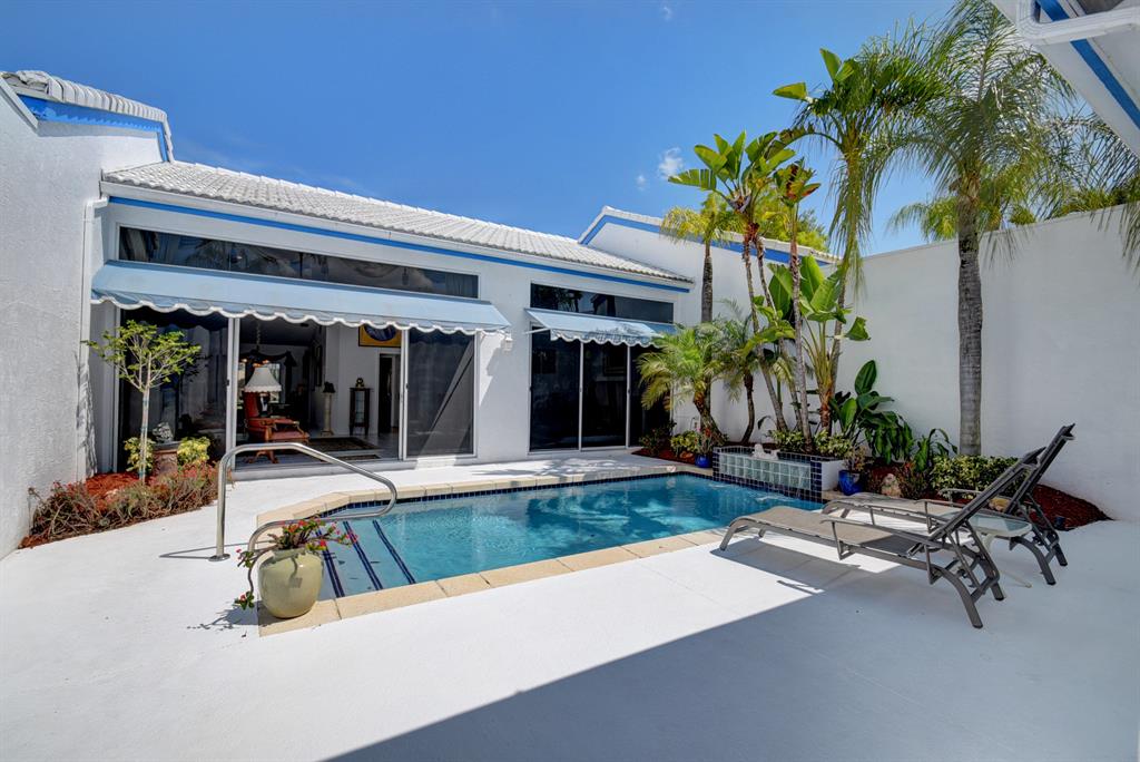 For someone who prefers privacy yet demands a feeling of spaciousness and luxury, Mykonos Court in Boca Country Club is the place. The home has 3 bedrooms and 3.1 baths, and a private courtyard where you can sun beside your pool and fountain. Inside you will find vaulted ceilings and expansive glass windows which combine to give you a feeling of luxurious space. The guest house has 2 bedrooms/den and 2 baths. but is currently furnished as a bedroom and living room. A separate backyard patio overlooks the C15 canal and the Bocaire golf course. This is a pet friendly neighborhood as well.