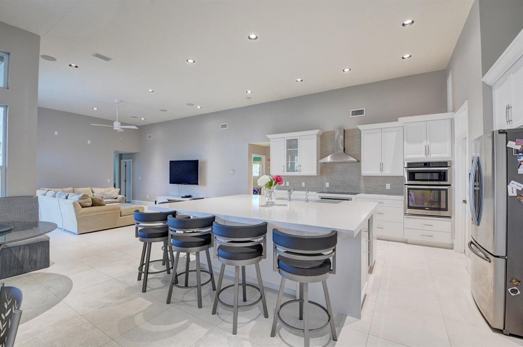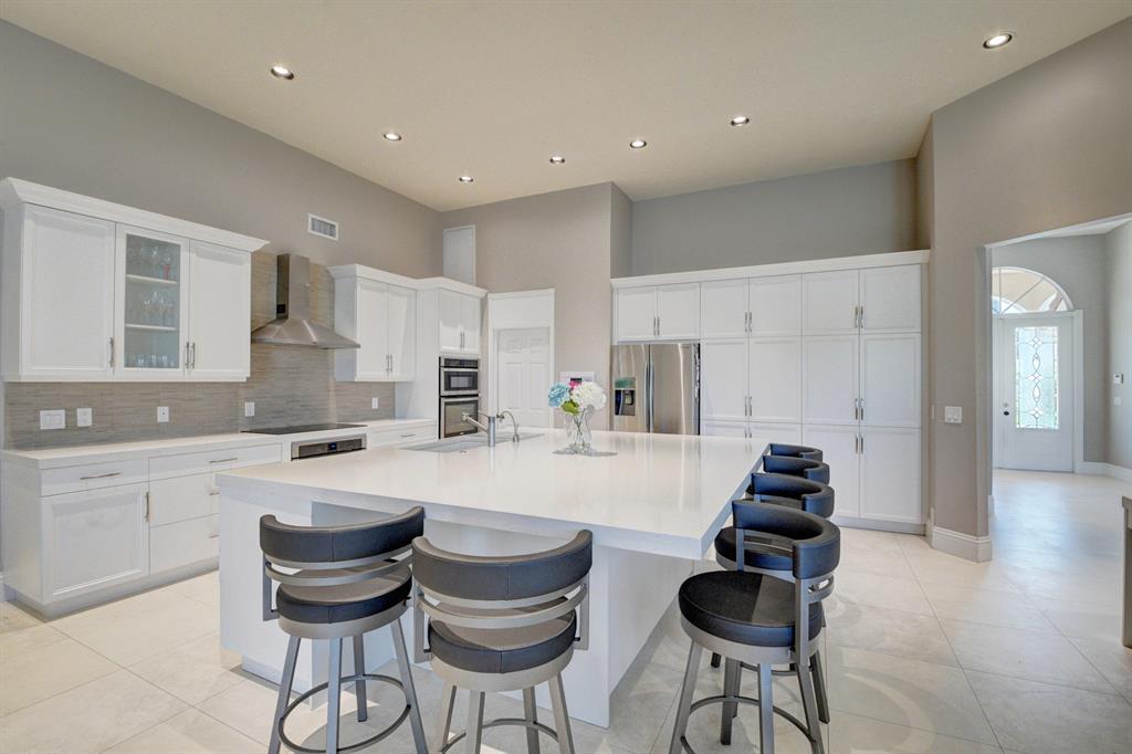 This Expanded Grand Cayman model is one of a kind, extraordinary with entire 2nd story suite added!! Nothing on the market like this before!! It's the best house, on premier street, with the fab view! Customized with stunning designer upgrades and appointments. Including 24x24 ceramic tile, crown molding. The home's centerpiece is the unbelievable chefs' kitchen and huge great room. With an enormous center island, plethora of cabinetry/storage, quartz counter-tops, double ovens, modular marble back-splash, induction range, new appliances including Bosch dishwasher, and wine fridge. Redone baths with beautiful marble, secondary bedrooms w/ faux wood floors. With impact windows & doors. A screened, re-tiled, and freshly resurfaced pool on wide lake. Marble circular driveway. Fabulous!