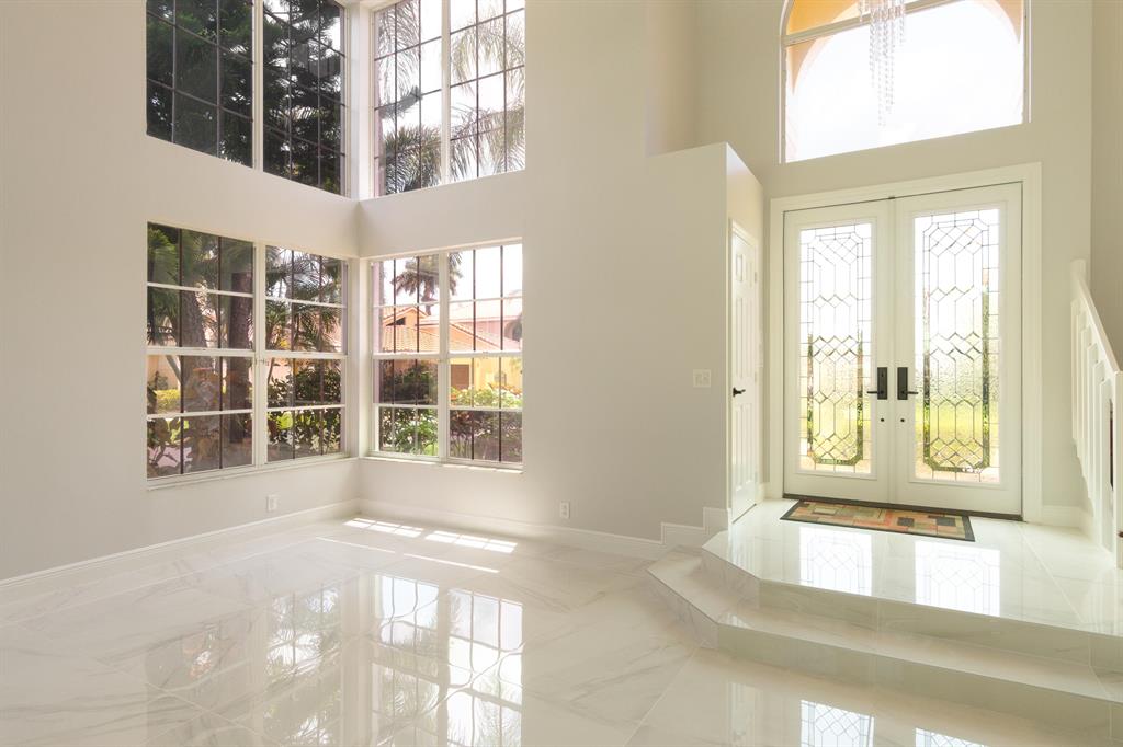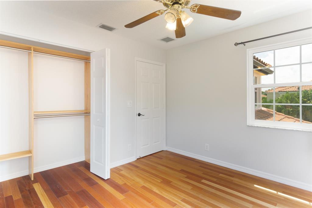 LET THE SUN SHINE IN! Beautiful European home in the desirable central Boca community of only 48 residences, ''The Colony.'' Featuring a lovely leaded-glass front door & grand elevated foyer, natural sunlight floods into this 3-bedroom, 2 1/2 bath home through over-sized picture-paned & Palladian-style windows, & French doors. This bright beauty has a transitional style w/white newly installed tile and real cherry wood flooring. The living/family room area is cleverly defined by a wet bar. The kitchen is designed tastefully w/custom wood cabinets & a special antique fitted-in hutch & granite counter tops. Master bedroom is on ground level and has ample closet space (one walk in and one reach in) & a unique master bath with a glassed off separate shower & tub illuminated by skylight. -mor