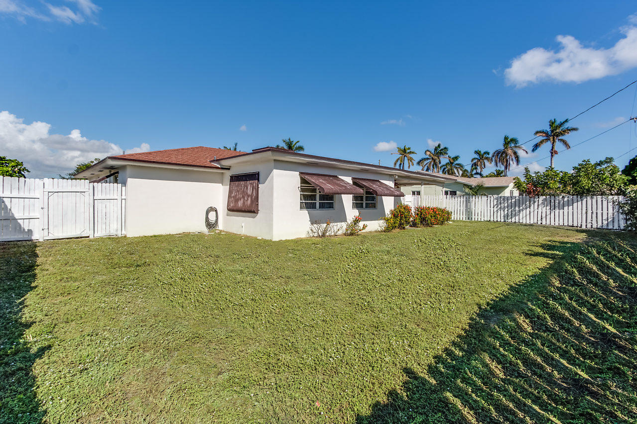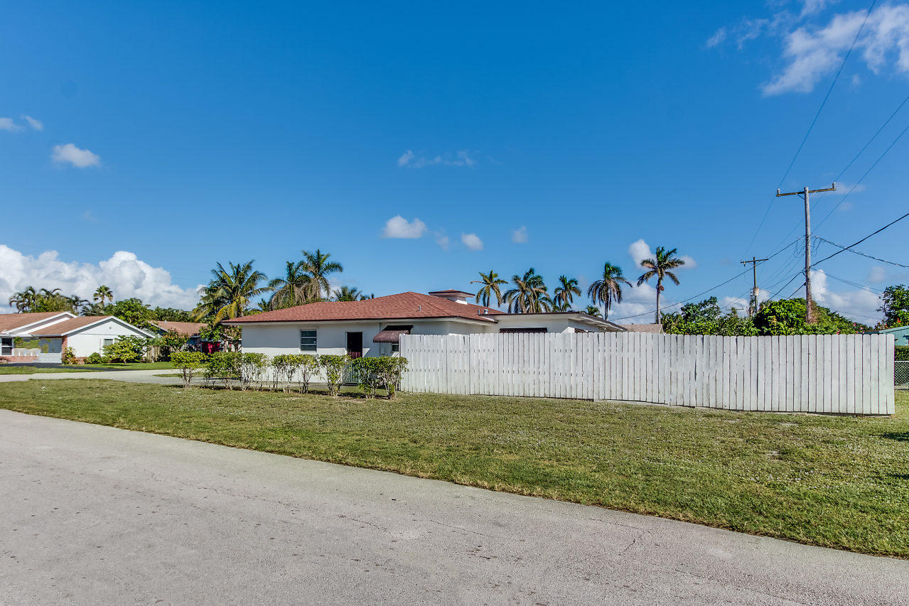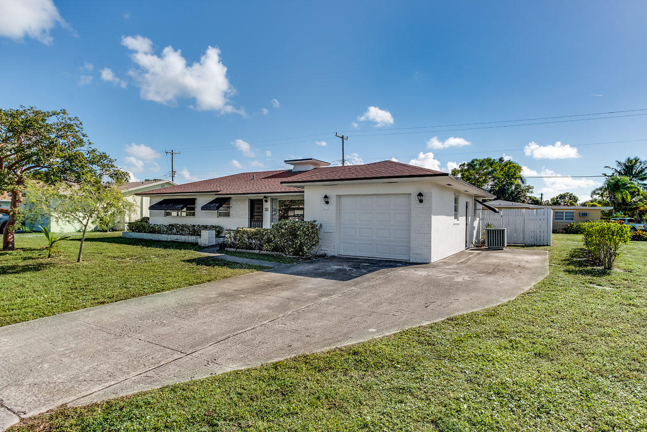 3 BR/2Bth, Den, Large Big Living/Dining/Fla Room, New Kitchen w/granite tops, Lenai, Laundry Room, Garage, Off Street parking. #rd Bedroom does not have a closet. New shingle roof. Large Corner lot with great potential to add Pool. CLOSE to Beaches, FAU, Schools, Malls, Mizner, Entertainment, Palm Beach, Ft. Laud. Live in a VACATION all year long!