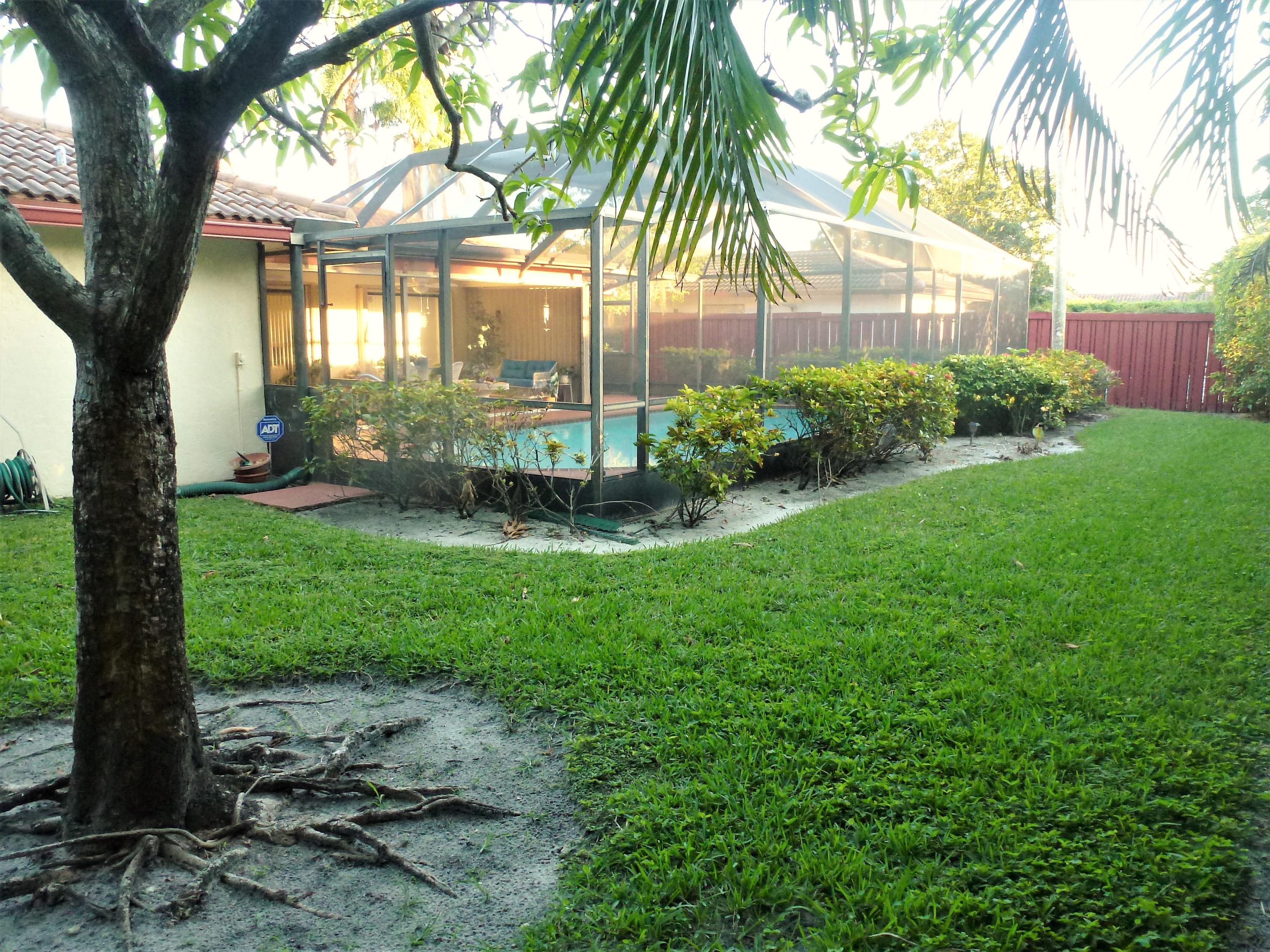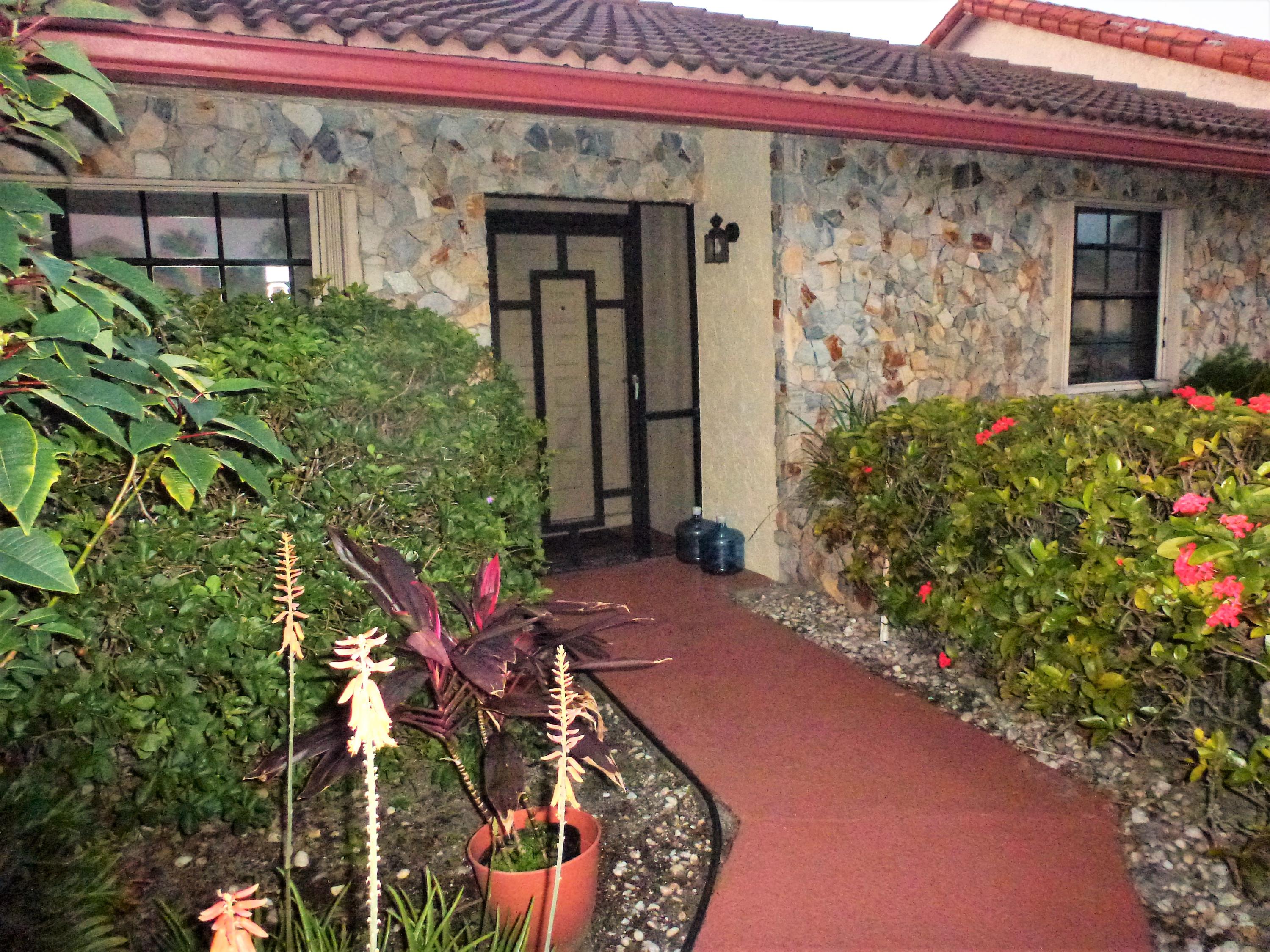 Come fall in love with this rarely available stone front home in the coveted Village Del Mar! This light and bright home offers almost 2,000 square feet of living area with volume ceilings. The oversized kitchen opens up to the Great Room for today's modern lifestyle. Romantic master suite with a custom walk-in-closet and a private cabana bathroom. Fantastic outdoor space with a covered loggia and a screened-in patio and pool - perfect for entertaining! Top location - just steps to shopping, dining, houses of worship and so much more. Also convenient to the Town Center Mall, medical services, beaches, commuter roads and everything Boca has to offer! Boca Raton schools! Hurricane shutters for all windows. Space for a possible fourth bedroom. Dining room light fixture excluded