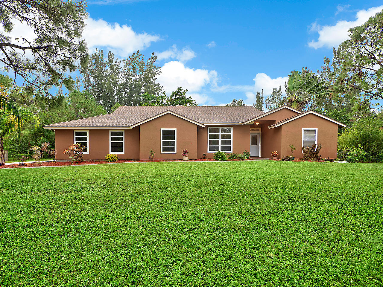 Country living at its finest! This beautiful 3 bedroom, 2 bath, 2 car garage home located on 1.33 acres has MANY UPGRADES. Granite countertops in kitchen with beautiful wood cabinetry with built in wine rack, new stainless steel appliances and custom backsplash. Upgraded bathrooms. Laminate and porcelain tile flooring throughout. Completely fenced in property with screened in porch. Centrally located near Acreage Pines Elementary School, Western Pines Community Middle, Acreage Pines Natural Area, equestrian trails, and Acreage Community Park.