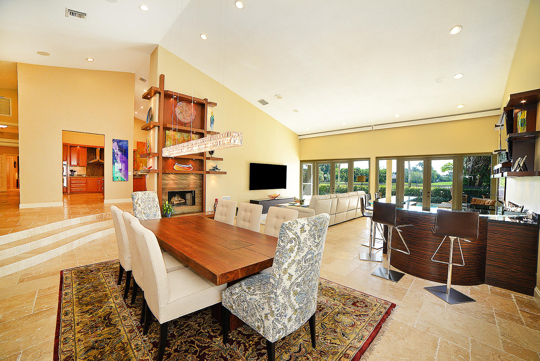 Spectacular Golf Course Estate with six bedrooms and two offices situated on a quiet street with stunning lake and golf views. This floor plan is perfect for entertaining with a spacious living and dining room area and a one of a kind fireplace and bar. There is a screened-in porch with scenic view overloooking a pool with Jerusalem stone patio, waterfall and firepit. The grand entry-level Master Suite includes a sitting room with views of the pool, lake and golf course. Two separate bedroom suites and two offices/bonus rooms in the other wing complete the first floor. The second floor boasts three additional bedrooms and two baths. The perfect house for entertaining, whether for large families or for families with grandchildren. Move-in ready, just bring your toothbrush.