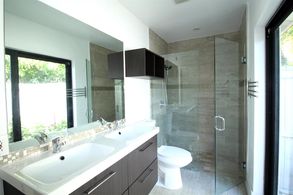 Come to live in a beautiful home within a quiet, family oriented community! A rated Schools! Walk with your kid to Addison Mizner Elementary! Single story totally renovated home features over 2100 SF under air open floor plan, custom-made kitchen with granite counter top, new high-end stainless steel appliances, and hurricane impact windows all around the house! Walk-in master closet, master bath with enclosed outside court, double sink, soaking tub, and natural marble shower! Relax with friends at the large screened pool with a covered, screened patio! Mature fruit trees in spacious backyard will provide your family with mango, avocados and soursop year round! Two car garage has space for the shelves on both sides and reinforced garage door! Laundry room has a wash tub. No HOA