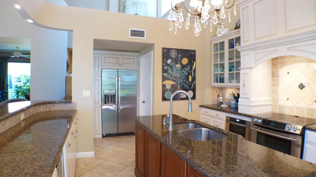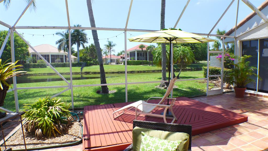 Lovely 3 Bedroom waterfront home, stunning kitchen with center island, granite counters and and designer cabinets. Roof has been replaced. Bathrooms with granite counters. Huge master bedroom and gigantic master close. Exquisite rounded walls, beautiful patio over lake. Third Bed/Den. Manned security gated, 8 har-tru tennis courts, resort styled pool, indoor basket & racquet ball courts, state-of-the-art fitness center with sauna, dance studio, yoga classes and ping pong. Playground and full club house for entertaining or just playing bridge. No hurricane shutters, windows original. NO Equity/NO Dues. HOA fee includes LAWN SERVICE front & back, INTERNET & CABLE w HBO, paint, mulch. All A-Rated Schools. Welcome to paradise! NO Hurricane protection on windows or doors.