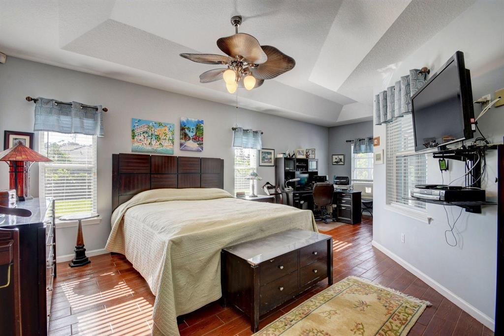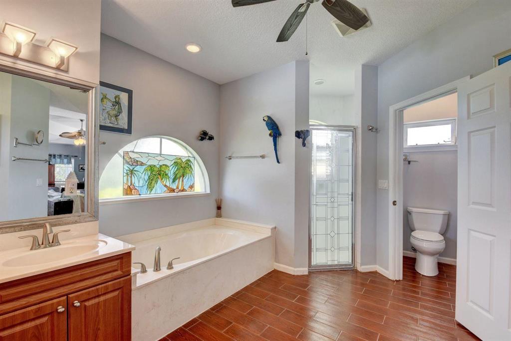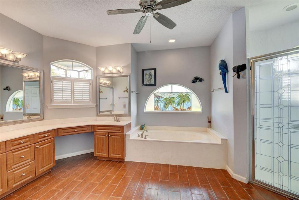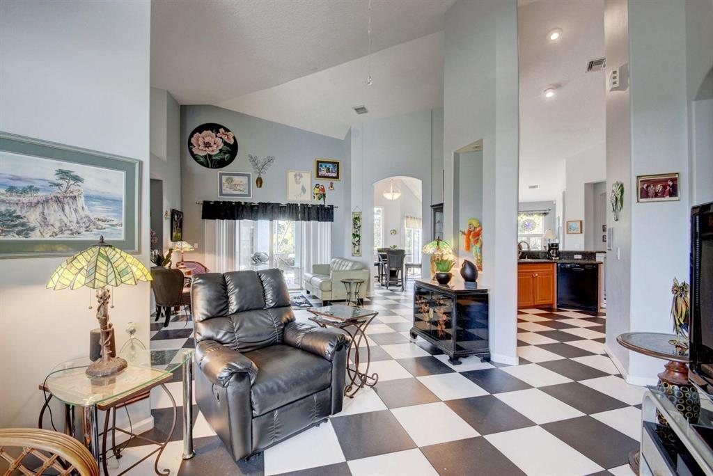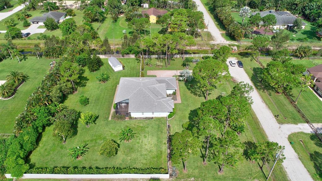 Situated at the end of the road on 1 1/3+/- glorious acres, this sprawling 4-bedroom, 3-bath house with 2-bay garage offers true privacy and the space to enjoy it. The fluid design of this bright open plan lends itself to easy living and even easier entertaining.Tile flooring unifies the living room, dining room, family room and kitchen. The chef's kitchen is graciously appointed with granite counters, well-crafted cabinetry, high-end appliances, a breakfast bar and a large pantry.A secluded double door master suite features his and hers walk-in custom closets, ensuite bath with his shower and her soaking tub, a sitting/office area, and private access to a roomy screened-in patio, that looks out on seemingly endless lawn, mango & banana trees and