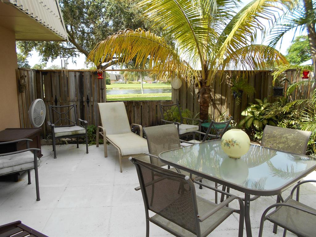 Tropical, quiet, private paradise w/canal views. 2 master suites. Accordion shutters,2.5 bathrooms updated, full sized washer/ dryer, kitchen updates, appliances ss, Granite countertops, 4 yrs. old a/c & other appliances, newer fans, Wood & tile floors 1st floor, top of line wood laminate floors 2nd level, drop down fence for views, barbeques here o.k., main. incl. water/bldg. ext. main., re fence & re-roof or repairs reserves, community pool, picnic area, racquet ball, pickle court, tennis, play ground equip. for the kiddies. Can walk to the pool from this location. Shopping, restaurants, I-95, discount mall, Kraviz, City Place, Airport within 15 minutes. Beaches 20 min., Post Office 10 min., Convention Ctr., Palm Beach 15 min. away. Investors may rent after close.