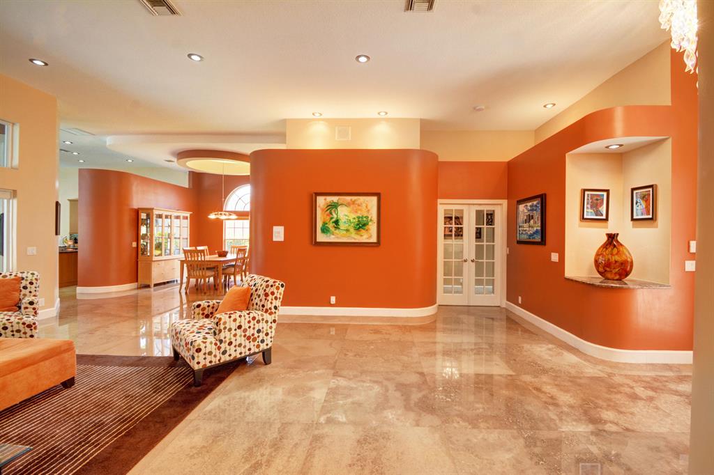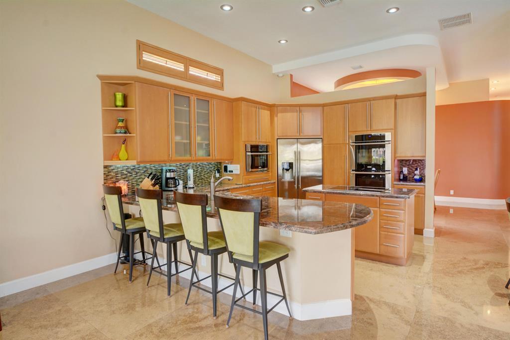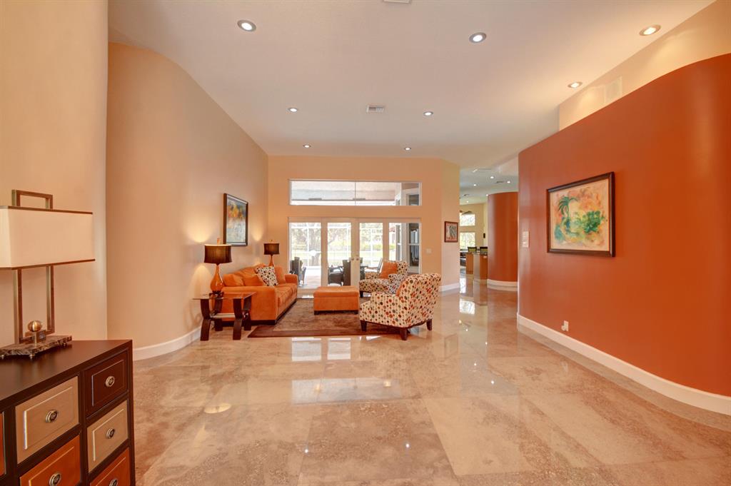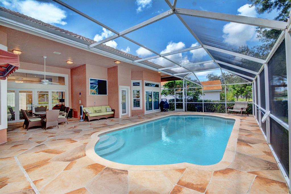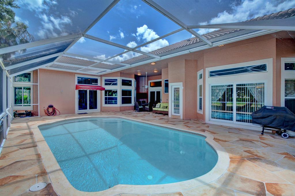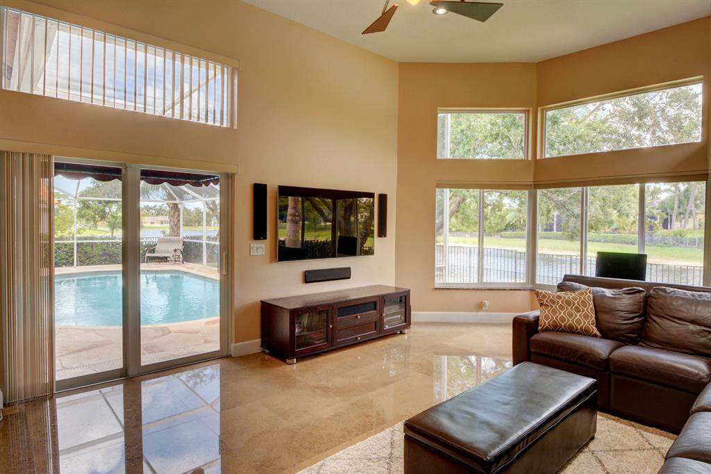 Beautiful, updated, MINT-condition home with long lake views in the gated community of Meadow Run. Single-story 5 bed/4.5 bath split floor plan. Fully renovated in 2010 to include COMPLETE HURRICANE IMPACT GLASS WINDOWS AND DOORS, 36'' Italian Marble floors in main living area and real wood floors in the master and office. Open kitchen with high end custom 48'' cabinets, granite countertops, stainless Electrolux and Bosch appliances and a double oven! All bathrooms have granite countertops and updated vanities. Office has a custom designed workspace and built in shelves in closet. Outside space includes saltwater, heated + screened pool, cabana bath and fenced yard. Completely ready to move in! COME SEE THIS IMMACULATE HOME! Community has playground + tennis courts.