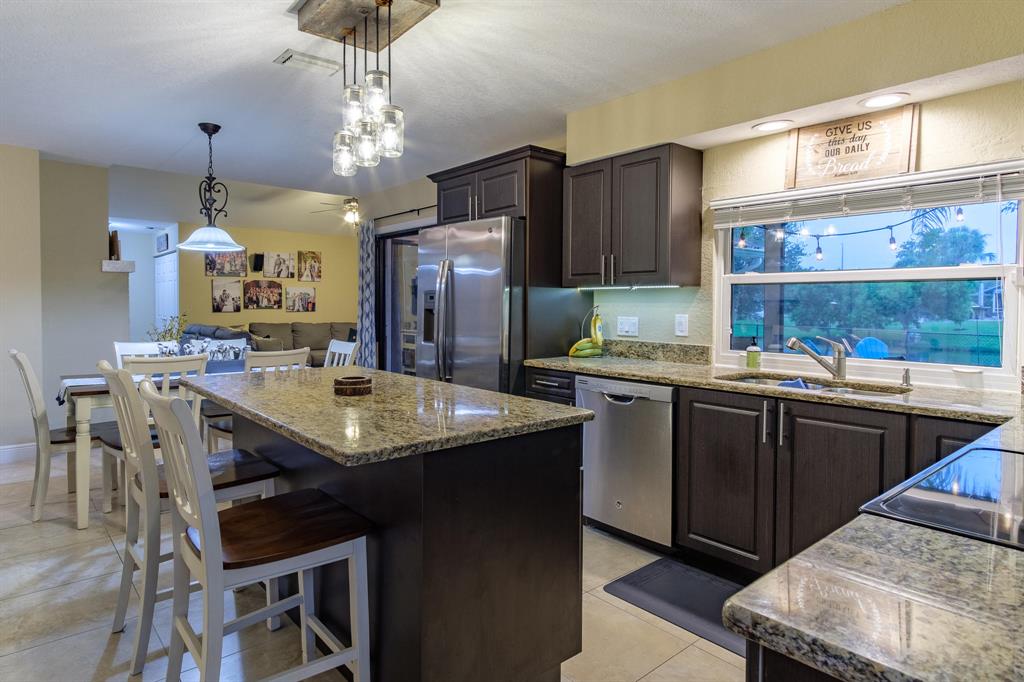 Lakefront charmer, remodeled to perfection! This cheery 3 bed/2 bath home features a superb open layout with serene lake views from nearly every angle. The open kitchen is fully equipped with a granite-topped island, stainless appliances, generous cabinet space, and a custom light fixture--all overlooking the lake from a pass-through window over the kitchen sink. Three sets of sliding doors let in plenty of light and lead to a tranquil outdoor space, which includes a screened-in porch and recently fenced-in yard with lake access for fishing. The master suite is a stunning retreat, with sliding doors that open to the backyard, a sleek ensuite bathroom equipped with dual granite sinks, and a large walk-in closet. Don't miss this one! Call to chedule a showing today!