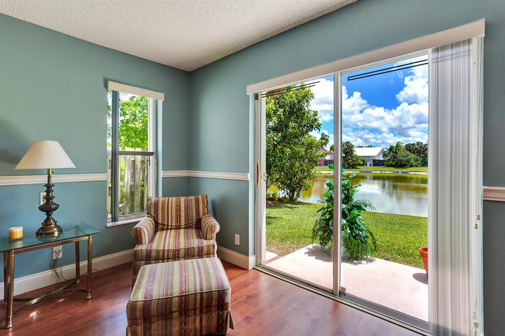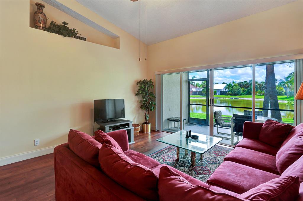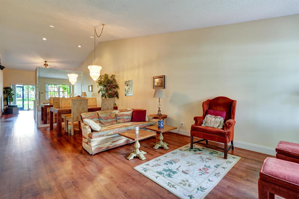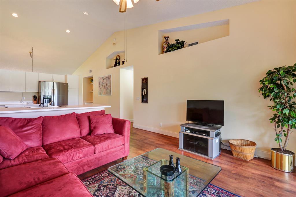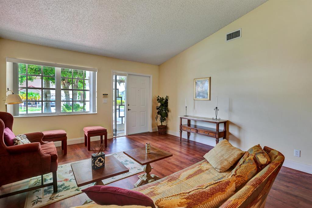 Fantastic and cozy 3 bedrooms and 2 bathrooms home located in a great community with low HOA! It is set back on a quiet lakefront lot and has been very well maintained. The home features an open floor plan, vaulted ceilings in the living and dining room areas, and beautiful laminate floors throughout. The kitchen is equipped with new stainless steel appliances. The master suite showcases elegant wall molding trim and a spacious walk-in closet. The master bathroom offers dual sinks and a separate shower. There is a considerable amount of light that comes thru the south-facing glass sliders including numerous windows in the house. Enjoy the serene lake view while relaxing on the enclosed screened patio. The exterior of the house has been recently painted. The roof was replaced in 2007 and