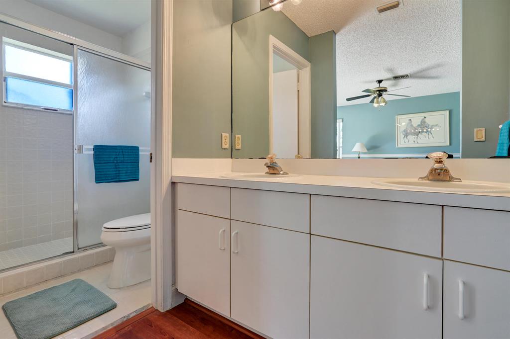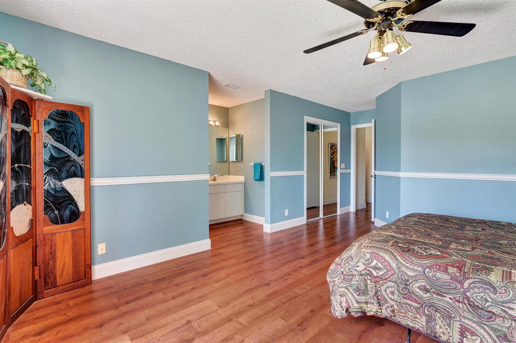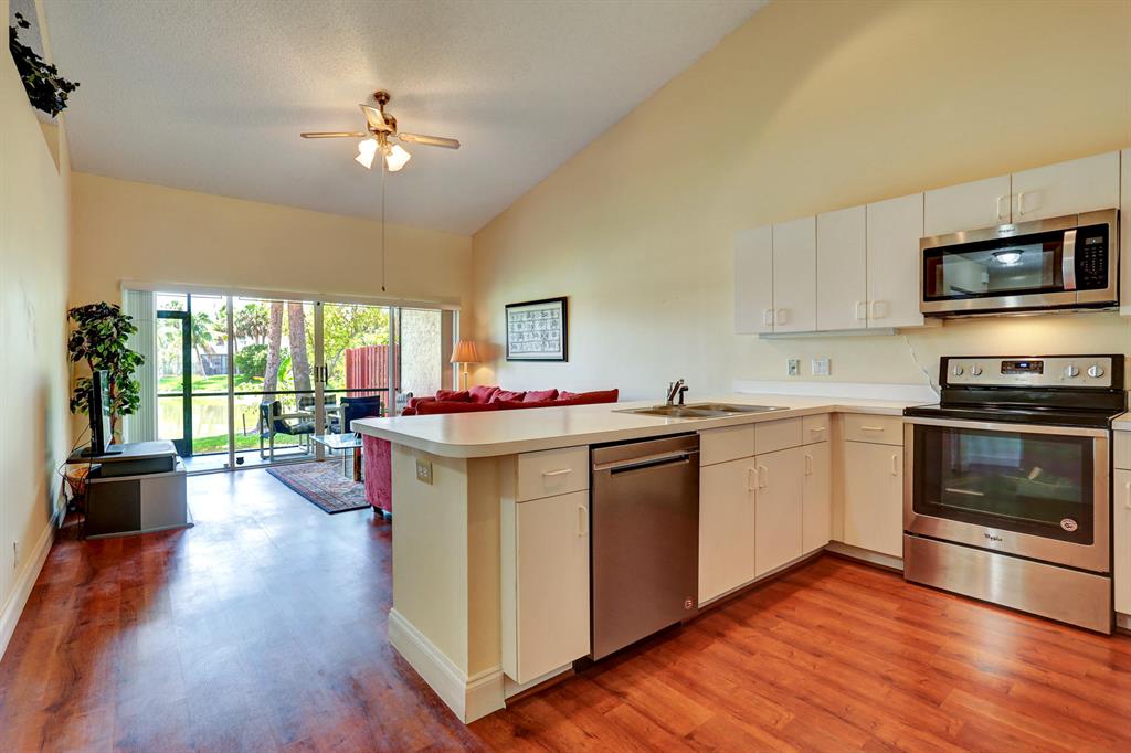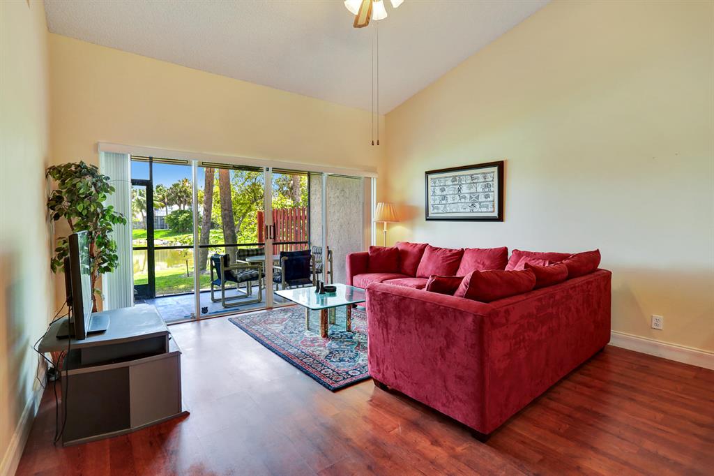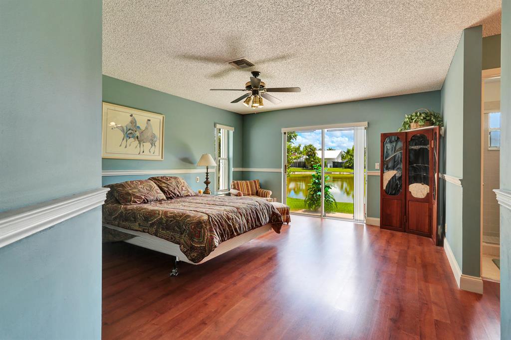 Fantastic and cozy 3 bedrooms and 2 bathrooms home located in a great community with low HOA! It is set back on a quiet lakefront lot and has been very well maintained. The home features an open floor plan, vaulted ceilings in the living and dining room areas, and beautiful laminate floors throughout. The kitchen is equipped with new stainless steel appliances. The master suite showcases elegant wall molding trim and a spacious walk-in closet. The master bathroom offers dual sinks and a separate shower. There is a considerable amount of light that comes thru the south-facing glass sliders including numerous windows in the house. Enjoy the serene lake view while relaxing on the enclosed screened patio. The exterior of the house has been recently painted. The roof was replaced in 2007 and