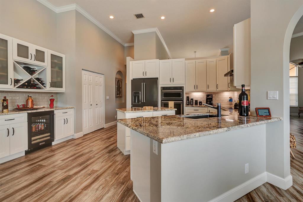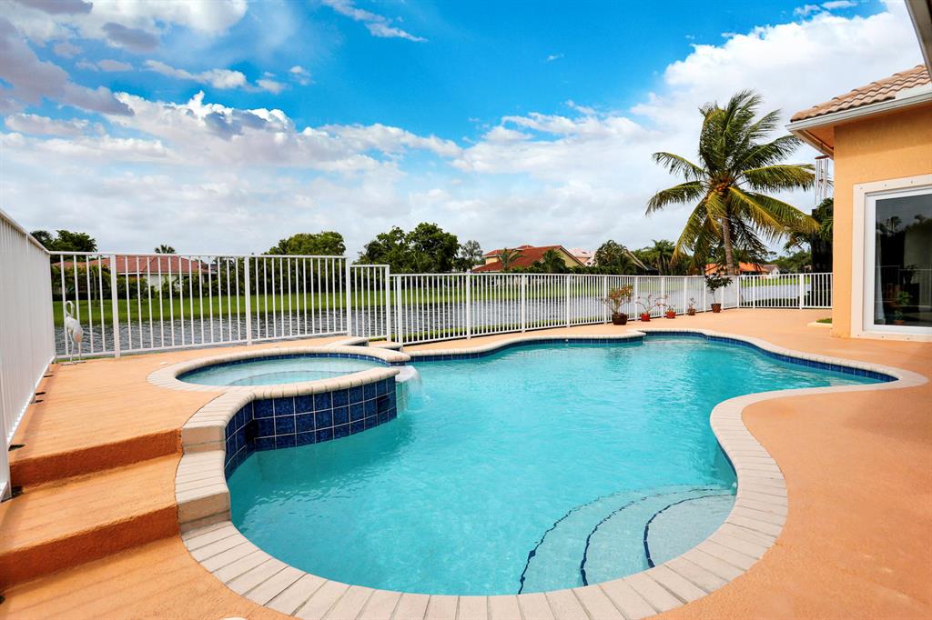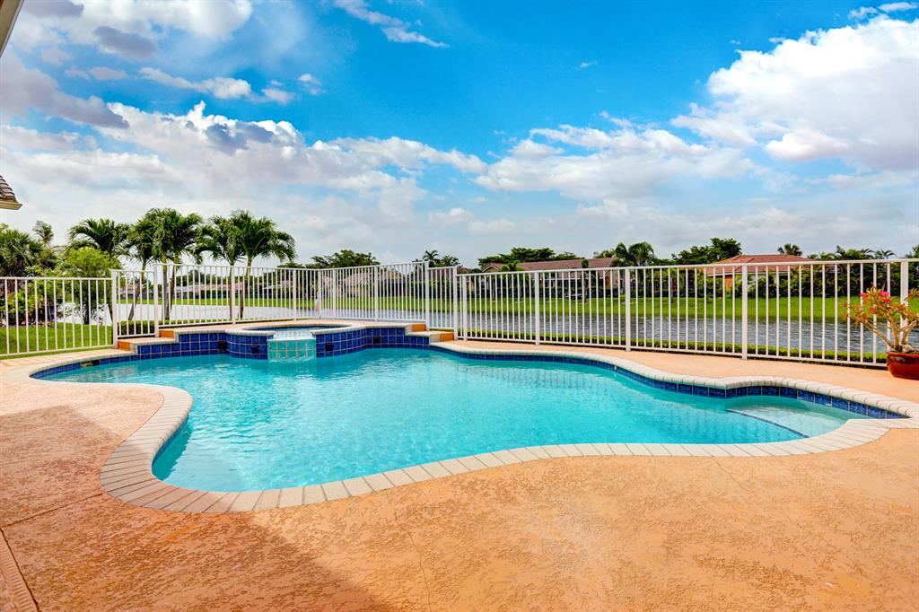 This elegant estate home is located in Coral Springs' Grand Reserve community. Enjoy lovely lake views from this updated and move-in-ready 4 bedroom, 3 bath plus den home. On the interior you will find: an amazing brand new gourmet kitchen complete with granite counter tops, shaker cabinets, center island, and new high-end appliances; new plank tile flooring; fresh paint; split floor plan; master suite with his and her closets; huge master bathroom with tub, his and hers sinks, and a walk-in shower. On the exterior you will enjoy: the best lot in community; oversized circular driveway; long lake views; heated pool with spa; two-car garage; fenced backyard; and lush tropical landscaping. This must see home is located near shopping, entertainment & schools.