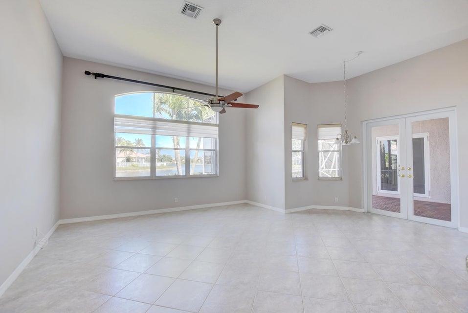 ''Sparkling Bright'' 4 2.5 One story Eaton Model home on gorgeous long lake front lot with amazing views.Perfection! Walk to A rated schools and fabulous county park.2 car garage and circular drive. Beautiful window treatments.Neutral Italian Valentino Diagonal tile in living areas. Kitchen has breakfast bar and side by side refrigerator freezer and Corian countertops. Breakfast area has doors to screened patio. Family room overlooks beautiful lake area. The super large screened in patio has huge overhang for furniture and entertaining space. House has full storm protection shutters.Like new for the discerning buyer. This property will not last. Priced to sell!!