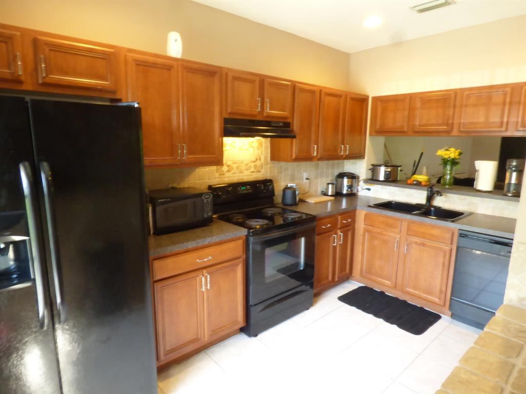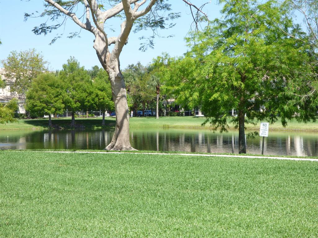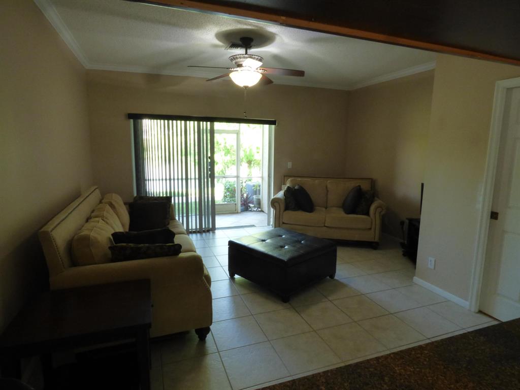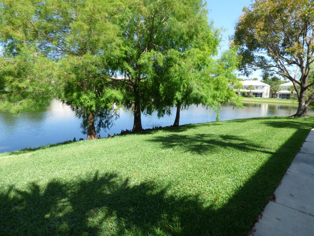 Major price drop for this Meticulously maintained gated community with common pool, volleyball court, children's play area, clubhouse, gym and pool. Maintenance fee includes exterior maintenance, roof maintenance, trash removal, cable, internet, alarm, pest control, security, common area and lawn. Unit has common area on first floor with 1/2 bath and 2 bedrooms on the second floor with their own private baths. Screened-in patio and Living room have beautiful lake views. Very quiet dead-end street with no through traffic. Kitchen has great storage, newer appliances and pass-through with view of lake. Master bedroom has volume ceilings and large walk-in closet. Nice neutral colors throughout. Ready to move in! 2 assigned parking spaces. Walk to Ballpark of the Palm Beaches.