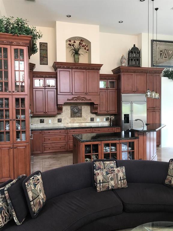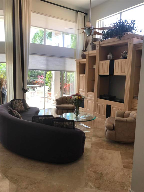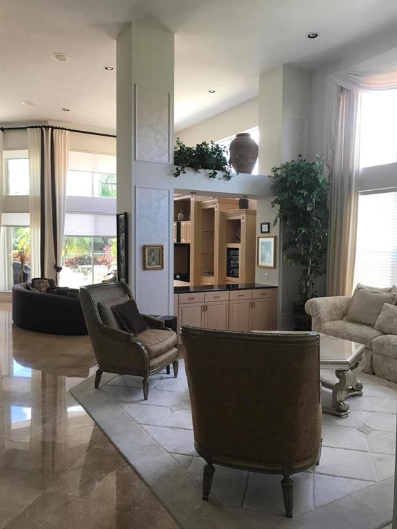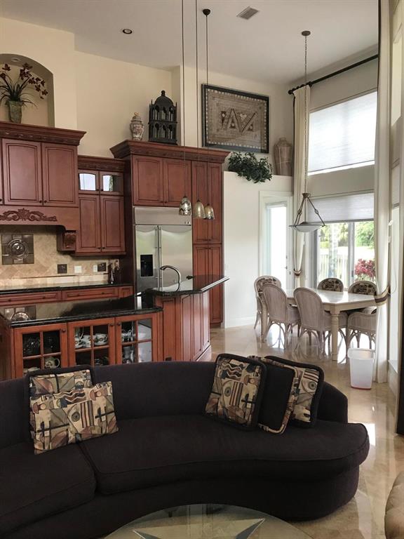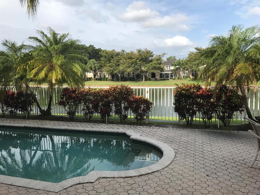 Completely remodeled and upgraded pool home on interior waterfront lot in very desirable Regent's Square. Soaring ceilings and windows lead to huge Master and 2 Bedrooms (includes office) DOWN with 2nd Master or Guest Suite and Loft upstairs (can also be converted to 2 Bedrooms plus loft upstairs). Saturnia Marble floors, lots of designer treatments and the Ultimate Wood Kitchen with full pantry, wall oven with convection microwave and warming drawer, induction stove and pull out spice rack. Granite counters. Spacious eat-in kitchen and family room with free standing wall unit. Closet organizers in 2 Masters and office. Lovely view of open pool, patio, and water. Accordian hurricane shutters. Outdoor Security and Landscape lighting. Fabulous Woodfield CC offers tons of amenities.