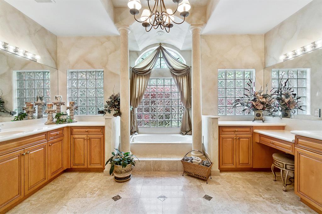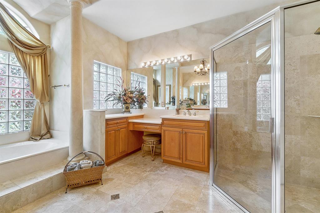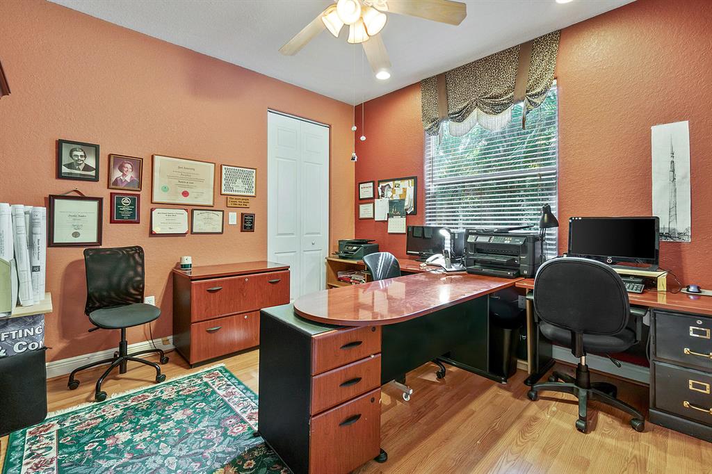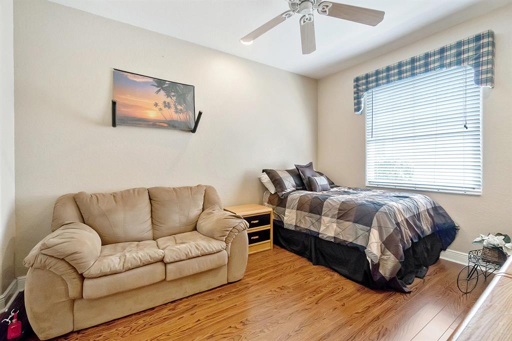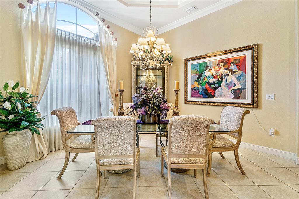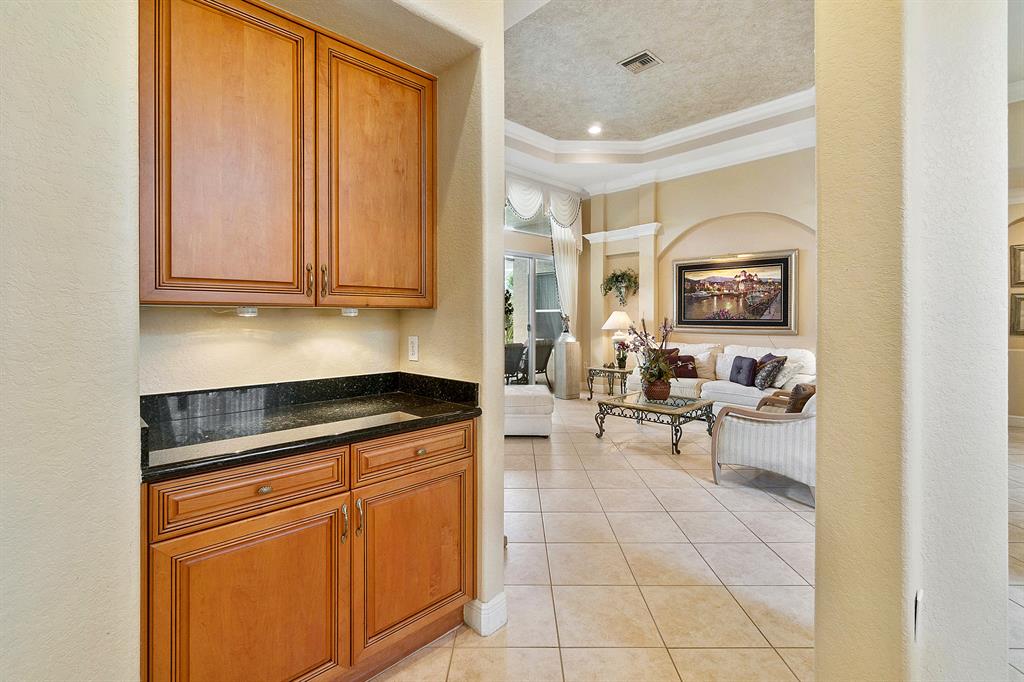 This lushly landscaped one-story home sits on a private treed lot backing south.Great split bedroom plan with 5 bedrooms,game room,3 baths and a 3 car garage.Tile has been installed on the diagonal.There are wood laminate floors in all of the bedrooms and game room.Perfect for entertaining,there is a formal living room,dining room and butler's pantry/bar.The gourmet kitchen features wood cabinets,granite countertops,tumblestone backsplash and all the bells and whistles!There is a center island,snack bar and separate breakfast nook.The family room,with built-in,is open to the kitchen.The game room is a perfect place for a pool table or playroom.The master suite features a sitting area,outfitted walk-in closets and luxurious marble bath.Backyard resort-covered,screened patio and heated pool.