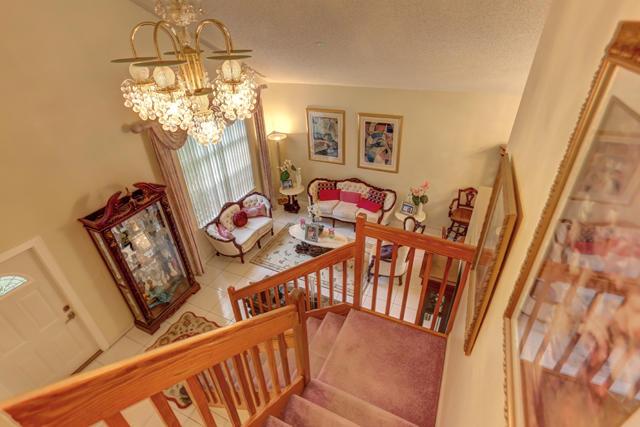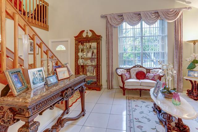 You'll love this immaculately kept two story 3 bedrooms 2.1 bathrooms family home located on an oversized lot in Royal Palm Beach. The entire home was recently painted along with stucco resurface. This charming home features a master bedroom on the second floor with its own private ensuite bathroom. The second and third bedrooms are also on the second floor along with a DEN/OFFICE and the second bathroom. The first floor has an open concept layout. Family room, dining room, kitchen and breakfast nook offer beautiful views of the POOL and backyard. The oversized backyard boast numerous mature FRUIT TREES now in full bloom. The entire home is protected with ACCORDION SHUTTERS. Over 2072 square footage makes this home ideal for a large family. This property will not last!!