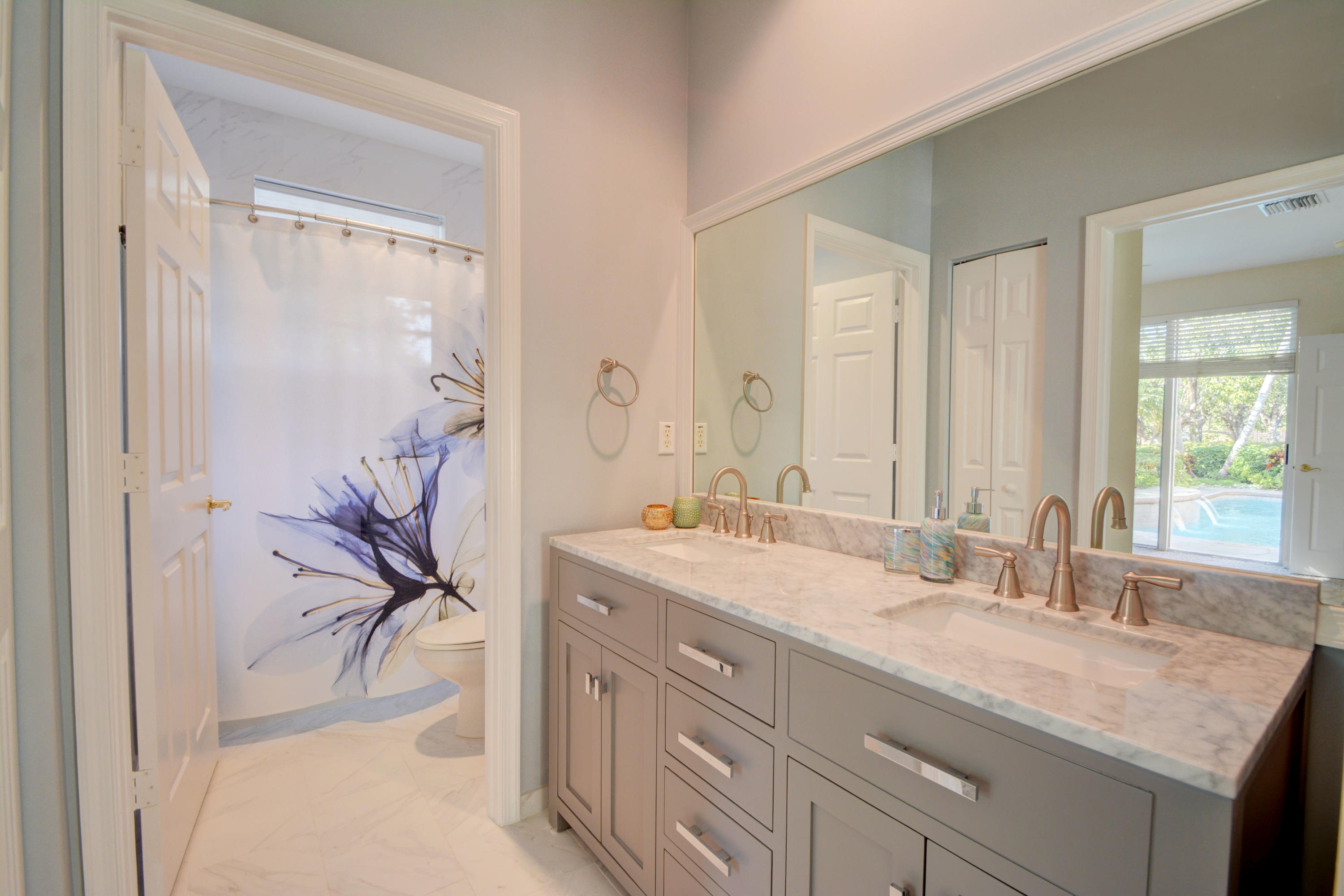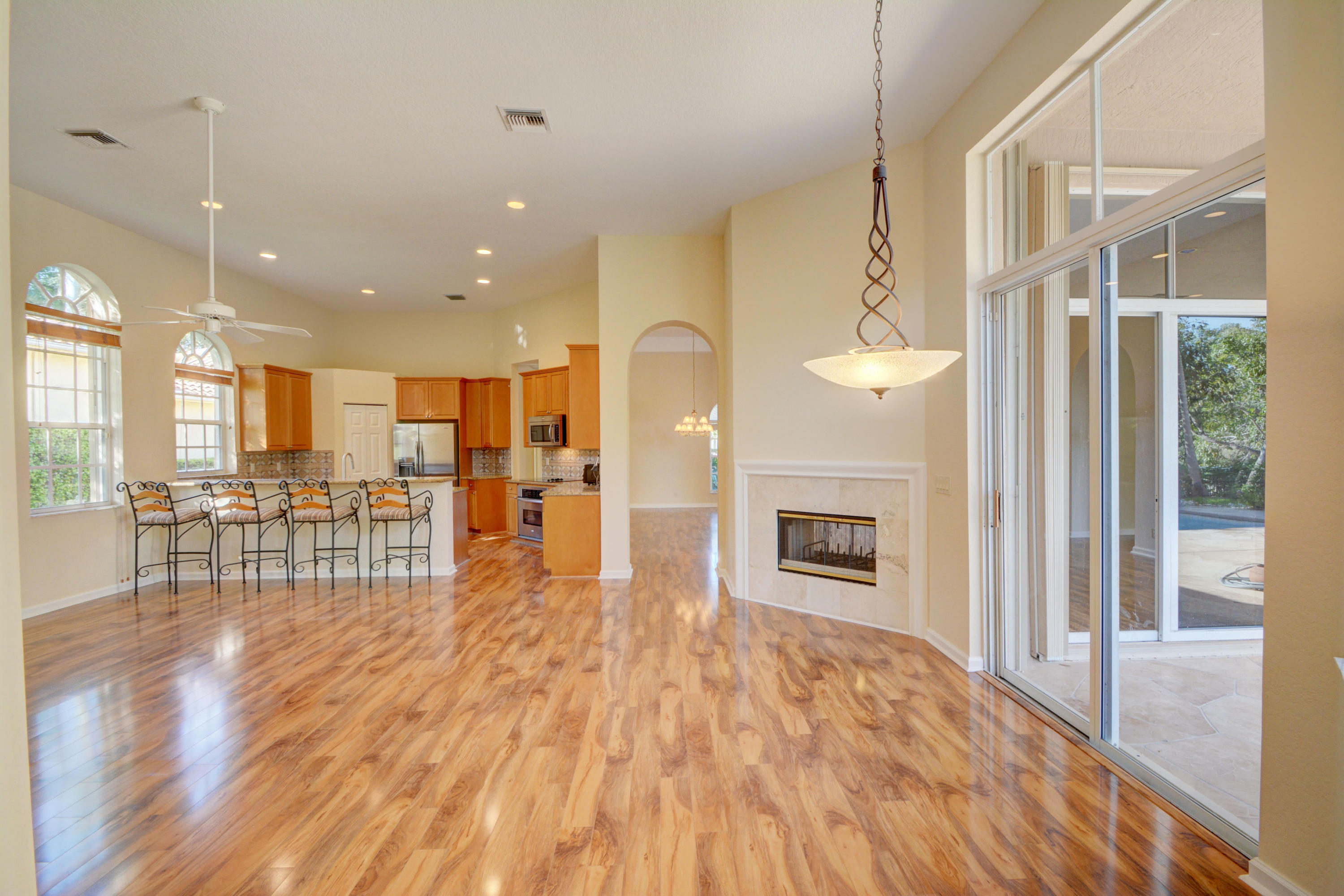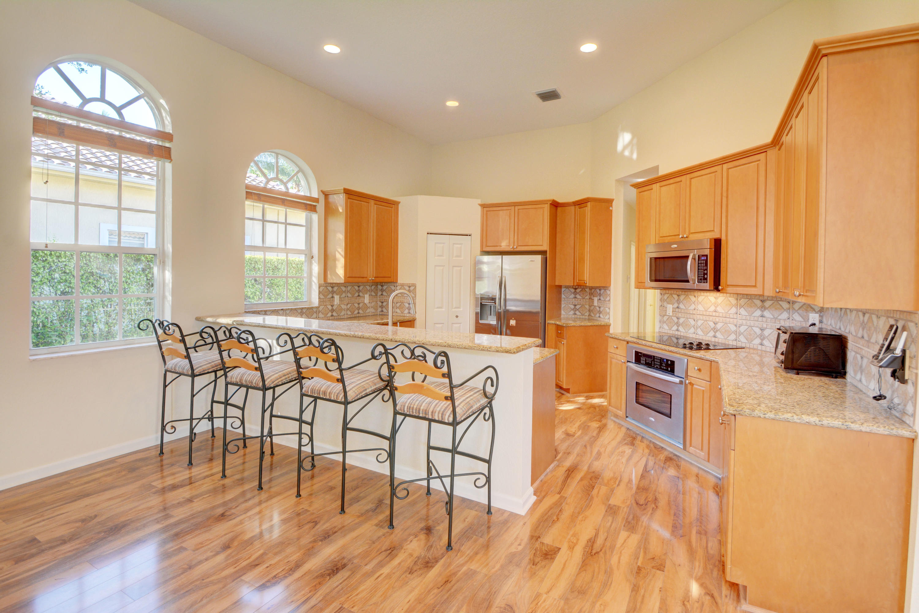 Custom waterfront estate home in the prestigious man gated The Isles East community. Updated landscape on oversized 1/3 acre lot. 5 bedrooms 4 full recently remodeled baths. Marble dual room fireplace. Updated flooring throughout and upgraded stainless steel appliances. High ceilings throughout,open floor plan with chef's kitchen. Just painted interior. Accordian shutters .This one won't last.