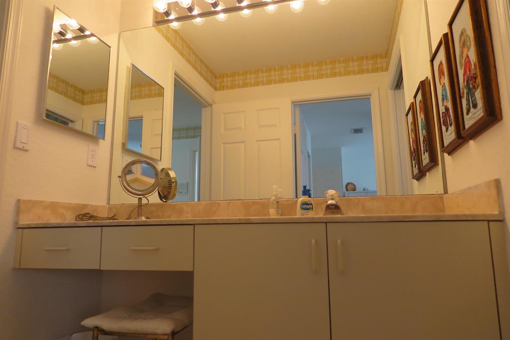 3 bedroom, two story single family home on cul-de-sac. This home is in excellent condition, with master down. Upstairs loft and 2 bedrooms. High ceilings for an open effect in the living room and dining room. All windows and sliders have hurricane proof accordion shutters. Roof replaced 2007. Air conditioning replaced 2015. Kitchen redone with granite counters and appliances. Family room right off the kitchen. Water heater replaced. Master bath room completely redone 2015. Lots of storage. Outfitted closets. Large screened patio overlooking the lake. Pretty tropical and upscale landscaping surround this home. Grade ''A'' school district. This is a fabulous home, hurry. Membership optional.