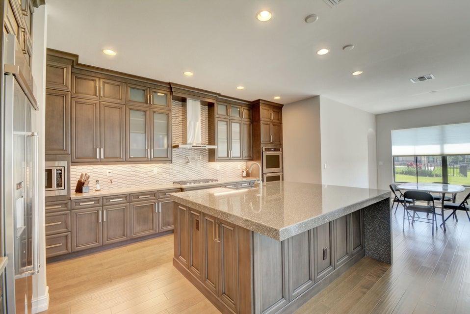 Welcome home to this impressive Watercrest Bellingham model with 5 bedrooms, 4.5 bathrooms, 3 car garage, and large lake front backyard with plenty of room for a pool. A downstairs master bedroom makes this 2-story residence an ideal floor plan. Connected living space includes great room with volume ceiling, kitchen with oversized quartz island w/extra storage, beautiful wood cabinetry, farm sink, and SS appliances including gas cooktop, as well as a casual dining area each of which share views of the covered lanai as well as the gorgeous lake. Cabana full bath also provides direct access to the outdoors. The upstairs loft makes the perfect gathering place for the occupants of the 4 2nd floor bedrooms. Other features include dual AC zone, surround sound, impact glass windows, large closet