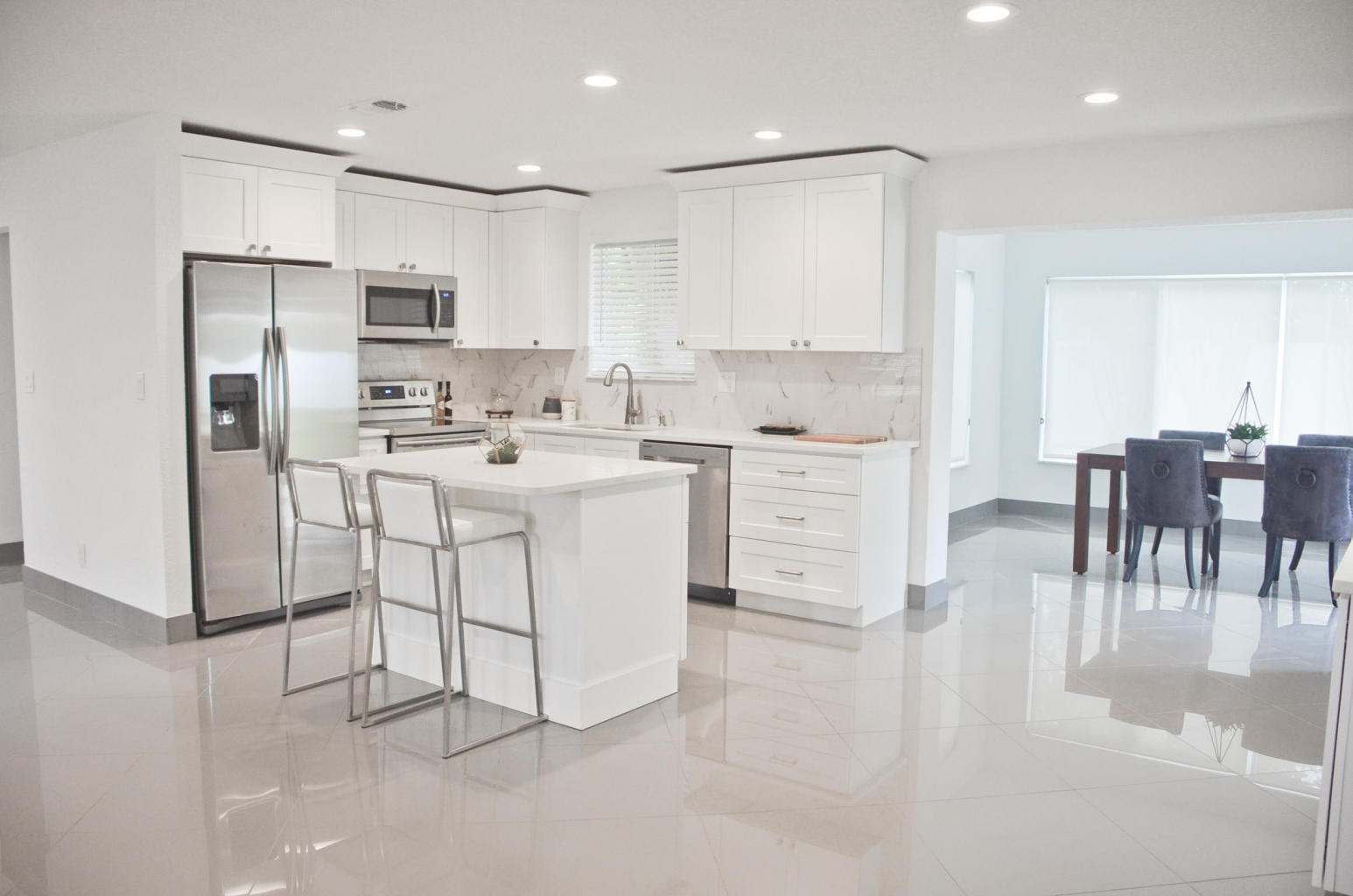 This 3 bedroom 2 bath single family home offers a spacious layout and a contemporary design. From the calacatta quartz countertops to the custom wood cabinetry, all upgrades will impress. The property is protected with impact glass windows and doors and enclosed with over 200 ft. of vinyl fencing. The exterior is a lush paradise with fresh sod, landscape and full irrigation. Situated on over a quarter acre lot - this piece of Boca Raton real estate is one of a kind. Located East of I-95 and no HOA. Perfect location. A must see.