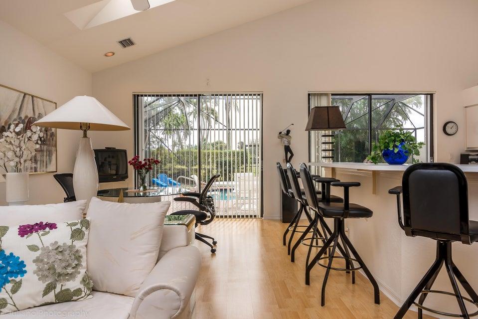 Extremely desirable one story SFH in the beautiful,gated community of Valencia at Boca Pointe. This 2 bdr/2 Ba plus DEN home can easily convert back to a 3 bdr. The location is perfectly situated on the Hillsboro canal which allows for total privacy. Very bright home boasts a custom, open floor plan with vaulted ceilings & textured walls. Split bedrooms with master bedroom in full view of the beautiful screened in pool.Large Master bath with separate shower, tub & double sinks & sky lights for extra light. Lots of customized closets. Laminate flooring in the main living areas & tile in both bedrooms. New upgrades include roof 2011, electrical 2015, pool pump/filter unit 2016,Hot water heater 2014, W/D,stove/microwave. Close to the beach,shops& restaurants. OPTIONAL membership available!