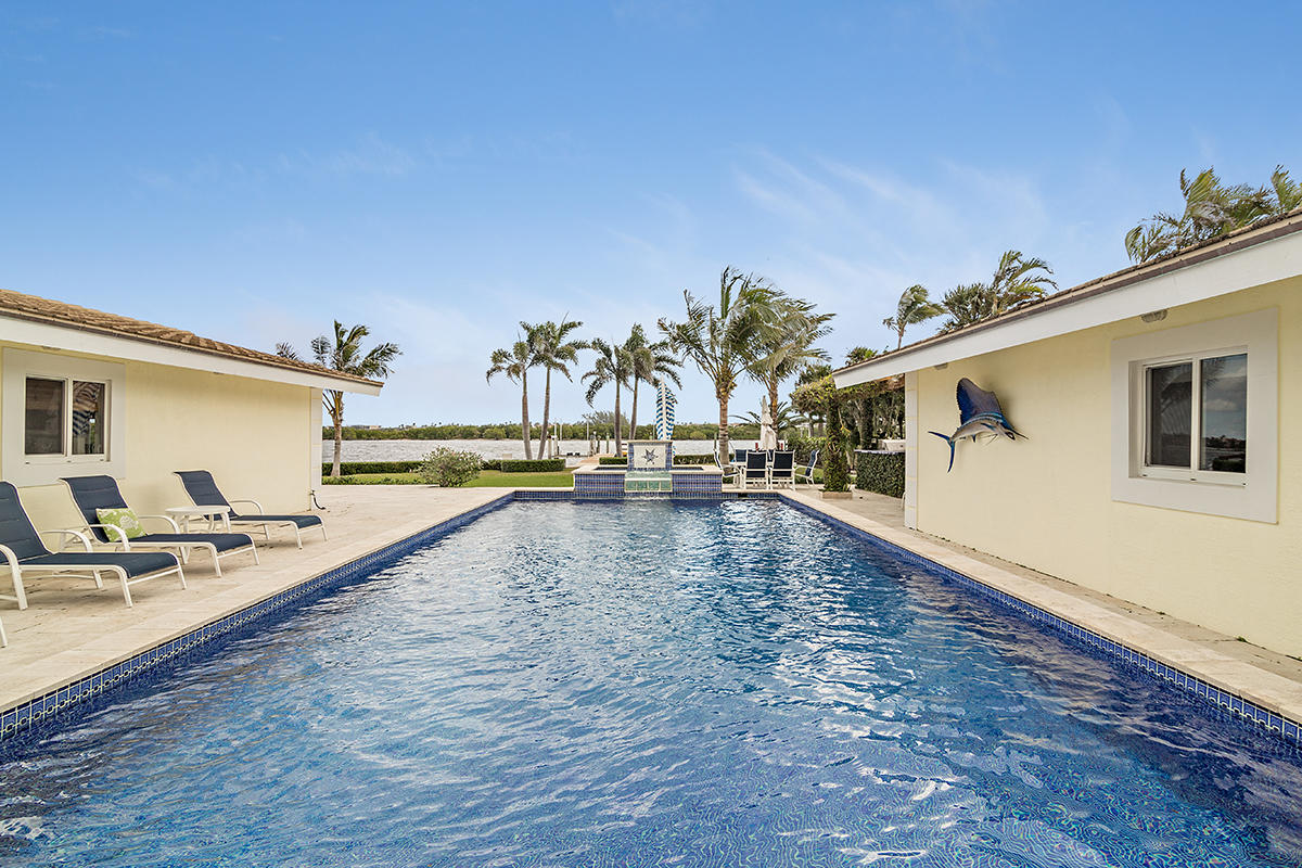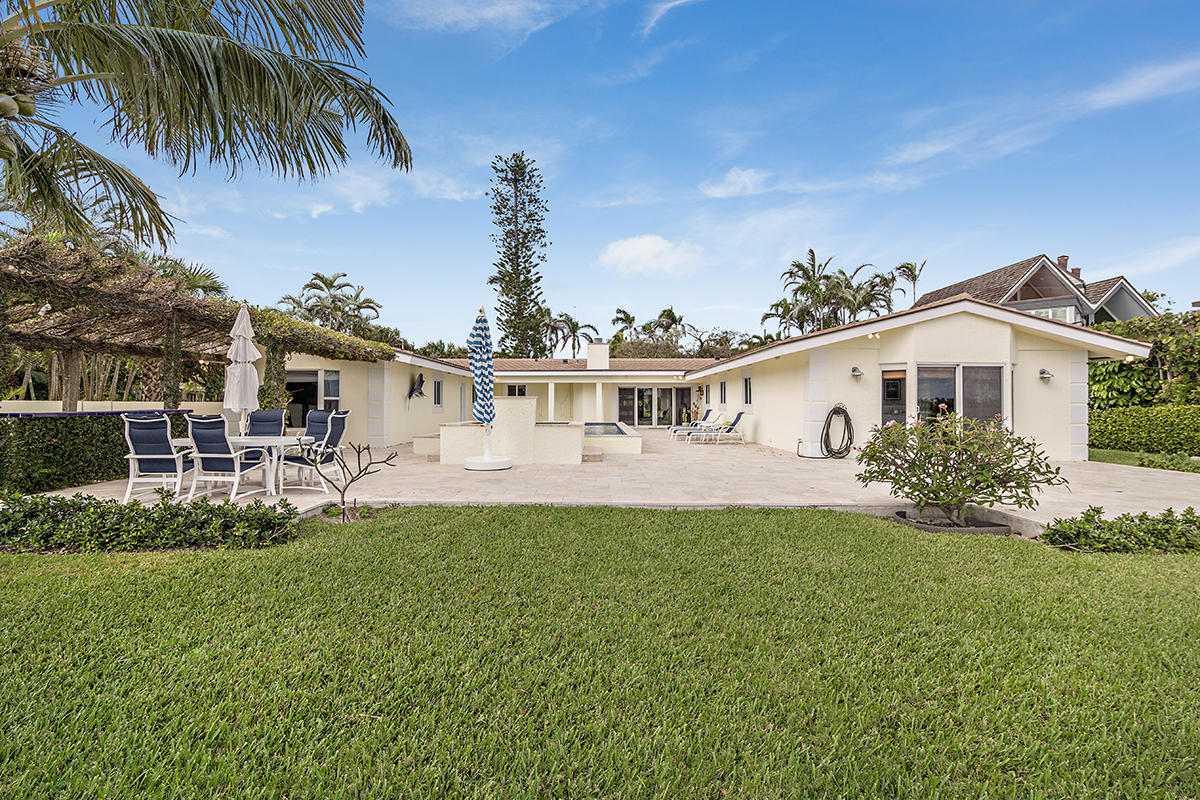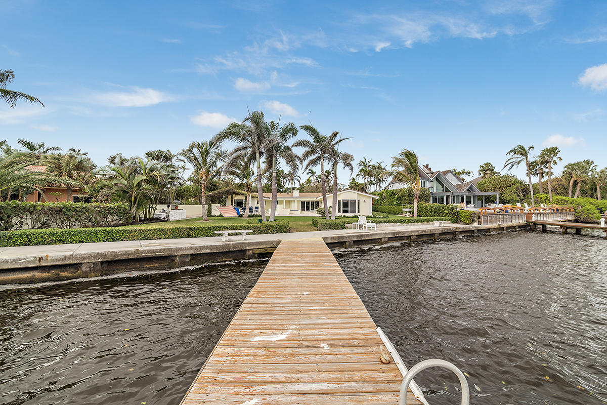 Located in the Uber desirable South of Southern (SOSO) neighborhood and situated on an oversized 32,000+ sq ft lot directly on the Intracoastal waterway rests this 4,064 square foot one story ranch-style home with 4 bedrooms and 3.5 bathrooms. Boasting Riparian rights and a deep water dock, this property has views of the island of Palm Beach from practically every window. When approaching the home, one drives through the long winding driveway which immediately brings to your attention the enormity of the property. Once in the foyer, your eyes will immediately catch the glistening colors of the sun dancing on the water outside both in the swimming pool as well as the Intracoastal waterway. The home is NOT historic and the property is not located in a historic neighborhood.