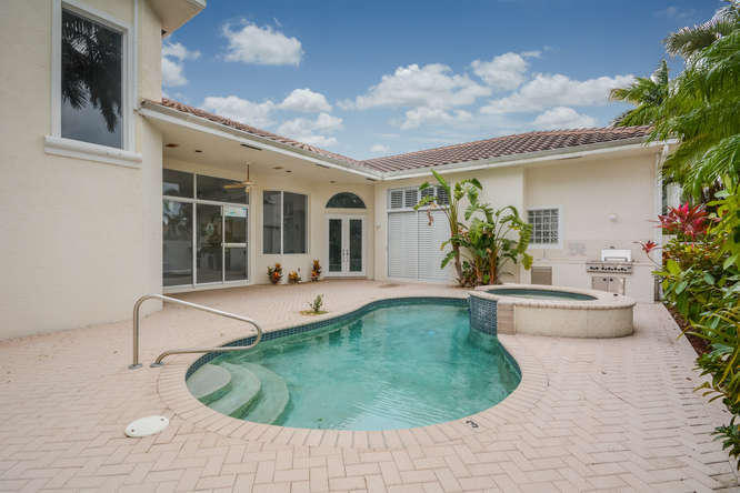 2 story courtyard pool home in the wonderful community of The Shores at Boca Raton. This large 5 bedroom plus loft; 4 1/2 bath, 3-car garage home is on a corner lot and the master bedroom is located downstairs. There is a Guest House with 1 bedroom and 1 full bath, located next to the pool and the patio. The summer kitchen is also a wonderful addition. The virtual staging pictures will show you how great the home will look with your furniture in it!! The Shores at Boca Raton is known for its wonderful amenities.