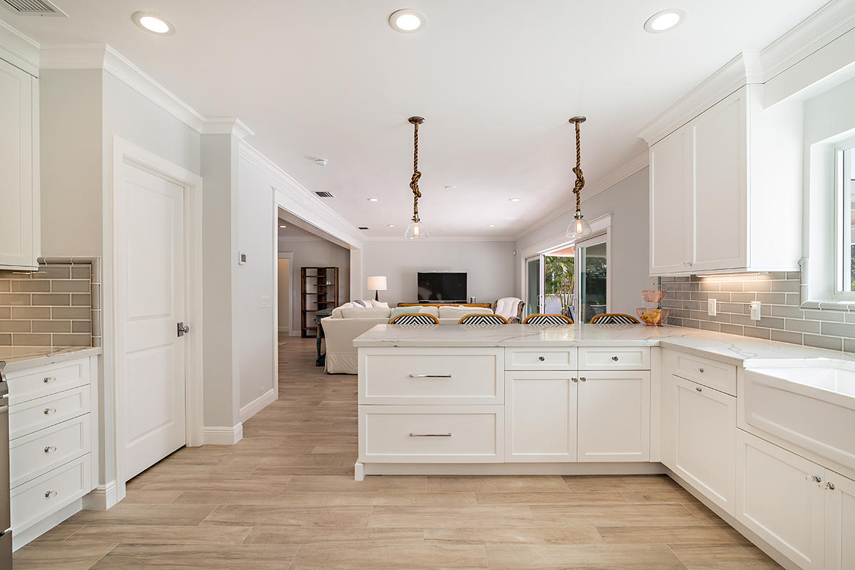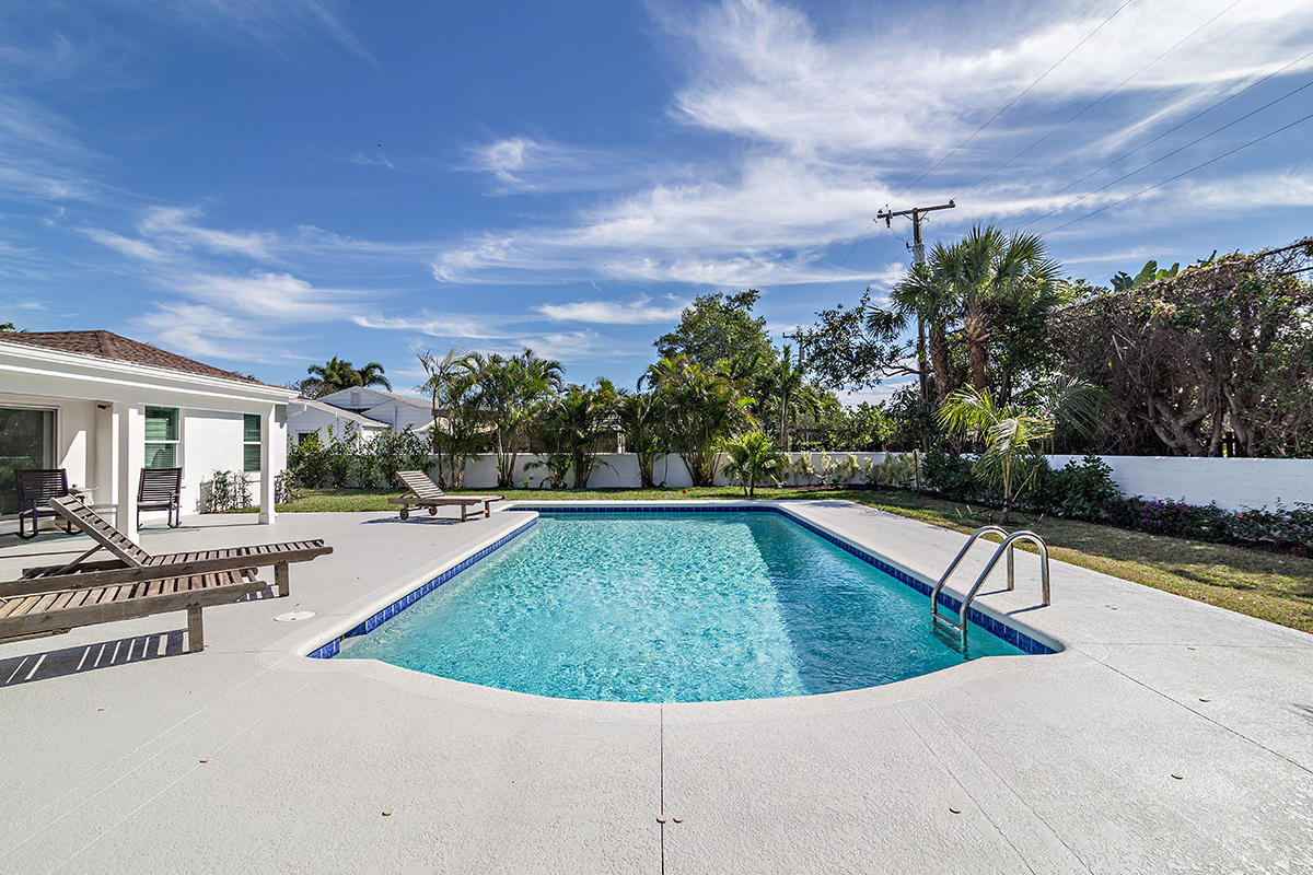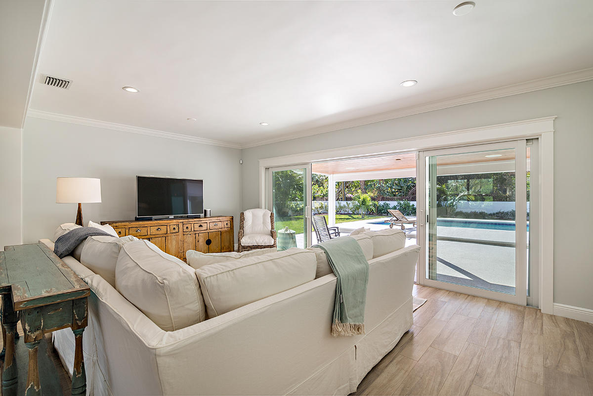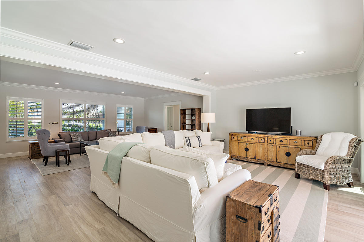 Situated on a 14,000 square foot lot, South of Southern Blvd and East of Olive Avenue, this magnificent & completely renovated, one story ranch style home is close to the Intracoastal waterway, Flagler Drive, area beaches and is in the South Olive Elementary school district. This 3 bedroom and 3.5 bath home just had a full renovation; new floor plan, new roof, new kitchen, new bathrooms (plus a newly added powder room), new flooring, crown molding, and so much more. The home features 2,968 total square feet of living space and is decked out with FULL impact glass windows and doors. The family room is adjacent to the kitchen/ dining room and is light, bright and open letting in ample sunlight from both the front bay windows and the large back sliders.