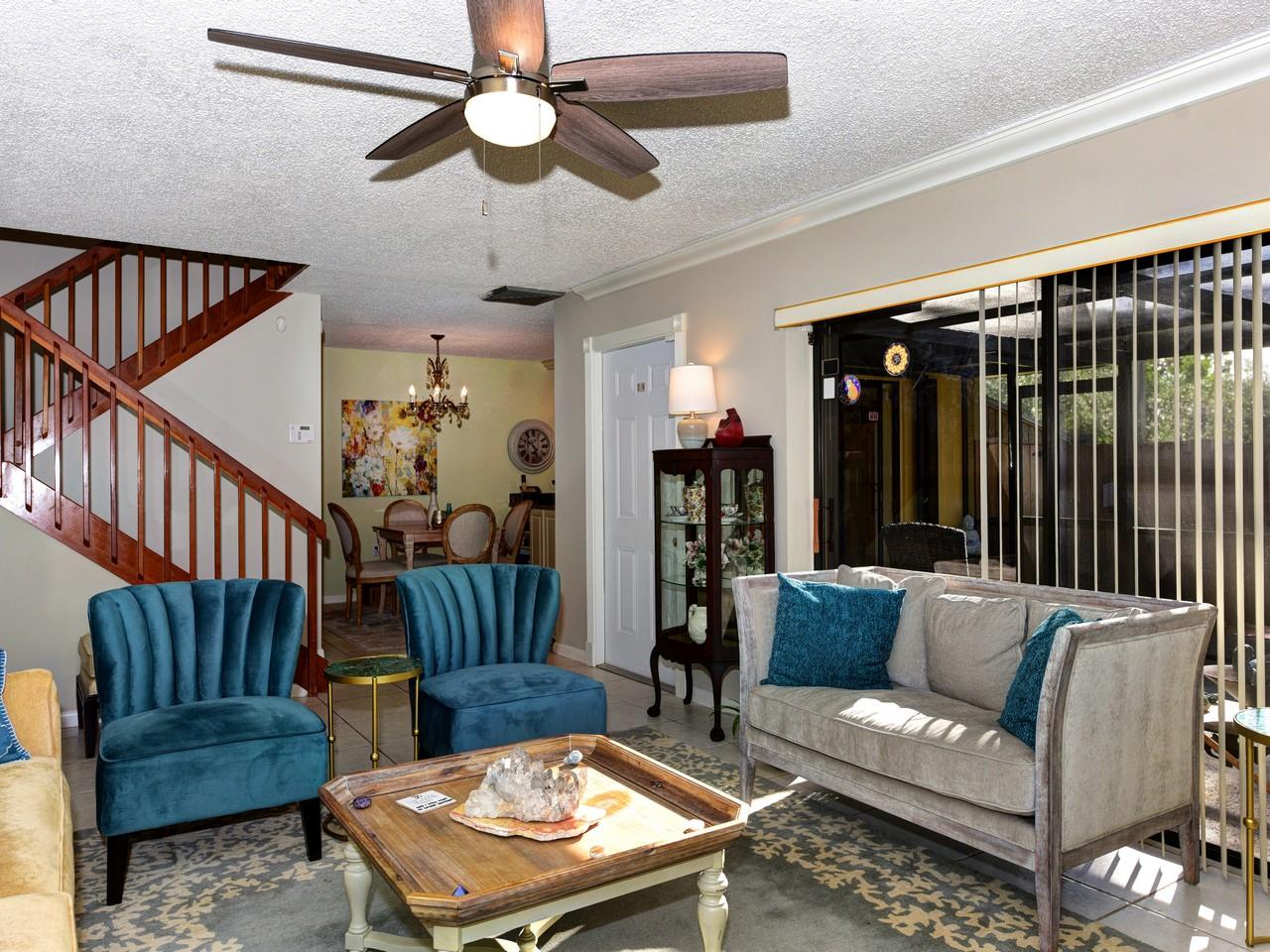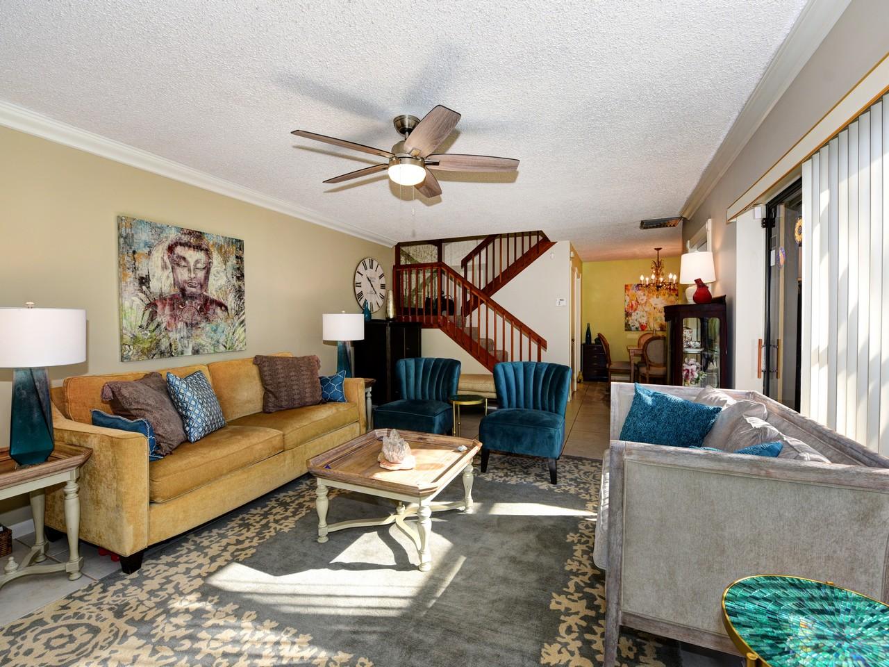 THIS IS A BEAUTIFUL TOWNHOUSE. YOU CAN TELL THAT IT HAS BEEN LOVED. IT HAS A FULL FENCE SURROUNDING WITH A LOVELY SCREEN ENCLOSED PATIO. THIS HOME BOAST A FULL SET OF ACCORDION HURRICANE SHUTTERS. UPGRADED KITCHEN CABINETS, COUNTER TOP AND BACK SPLASH. NEW REFRIGERATOR WITH AN ICE MAKER. NEW CARPET ON THE STAIRS, NEW DYER, FRESHLY PAINTED WITH NEW CROWN MOLDING. THE A/C UNIT ALSO HAS 6 YEARS LEFT ON THE WARRANTY FOR PARTS AND LABOR. THIS TOWNHOUSE IN NOT TO BE MISSED... THIS GORGEOUS TOWNHOUSE IS LOCATED RIGHT NIGHT TO THE BEAUTIFUL COMMUNITY POOL, TENNIS COURTS, CHILDREN PLAY AREA AND BAR BQ AREA PLUS MUCH MORE! IT IS A FANTASTIC CENTRAL LOCATION. CLOSE TO PUBLIX, THE NEW BALL FIELD, THE OUTLET MALL AND SO MUCH MORE.... AGAIN 'DO NOT' MISS THIS ONE....ALL SIZES ARE APPROX. YOU MUST VERIFY