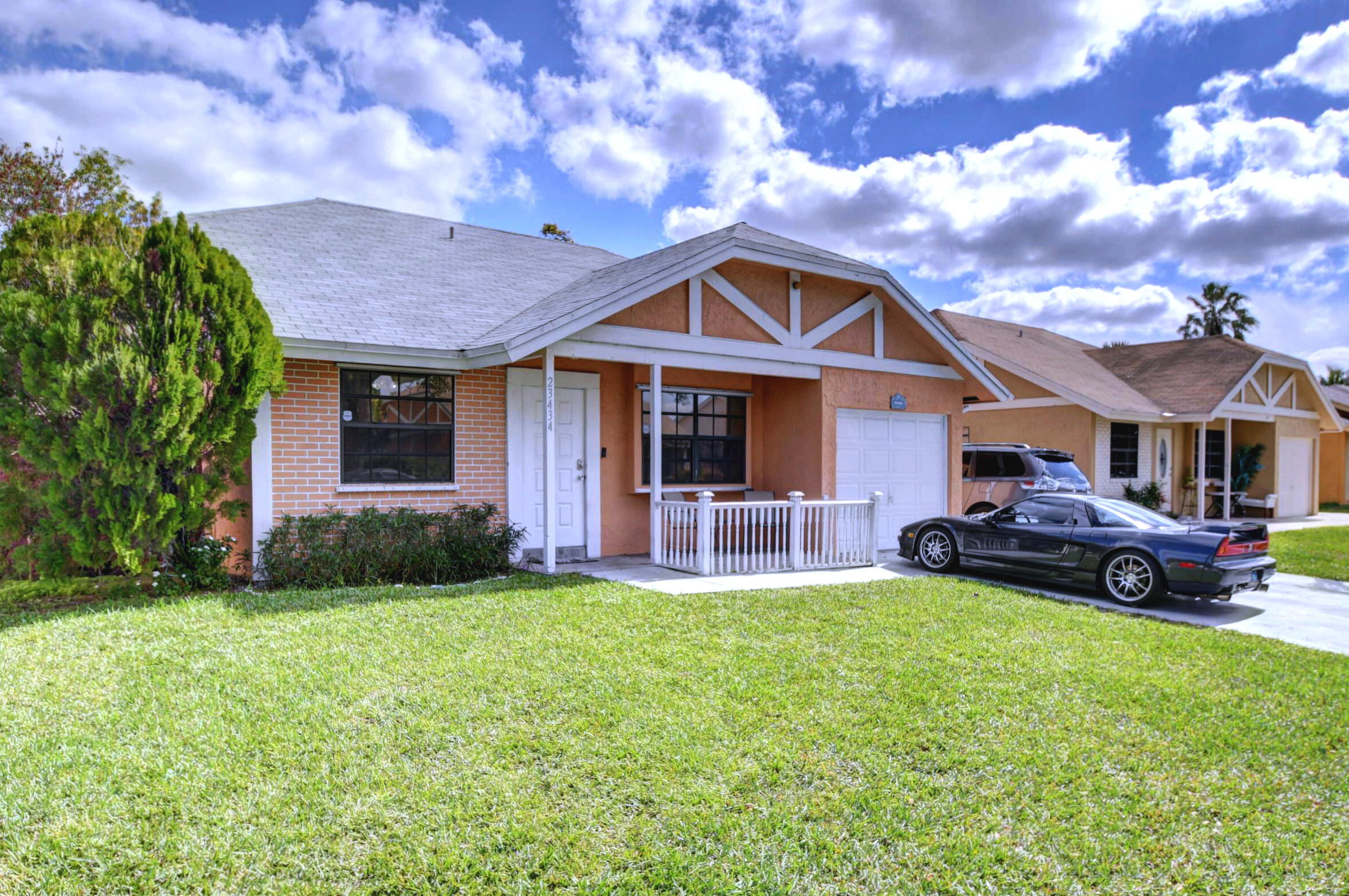 Rarely available single family home in Boca Country Estates. This charming 2/2 residence features vaulted ceilings, crown molding, updated kitchen with breakfast bar, handcrafted wood cabinetry, upscale stainless steel appliances & imported granite counter tops. Both remodeled baths feature newest style 'high' vanities adorn with exquisite double edge granite counter tops, high quality lighting/bath fixtures and under-mount sinks. The spacious master shower has a frameless glass enclosure / river rock shower flooring. This cozy home has a family room perfect for entertainment or a play or guest room. Exterior features include 1 one car garage, storage shed, spacious fenced in yard and an outdoor deck and loggia. HOA amenities = community pool, gym & play ground. Perfect home for all ages.