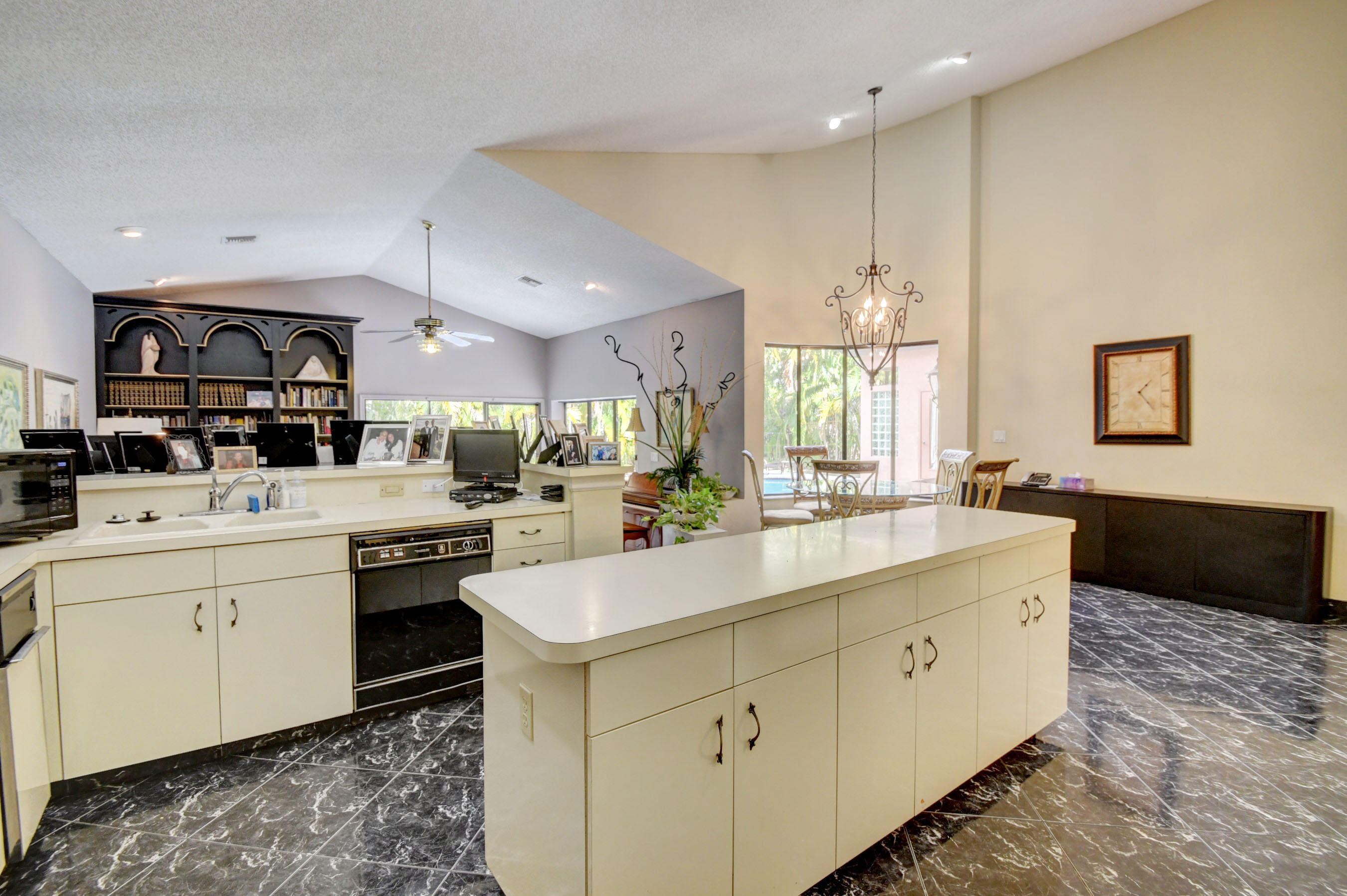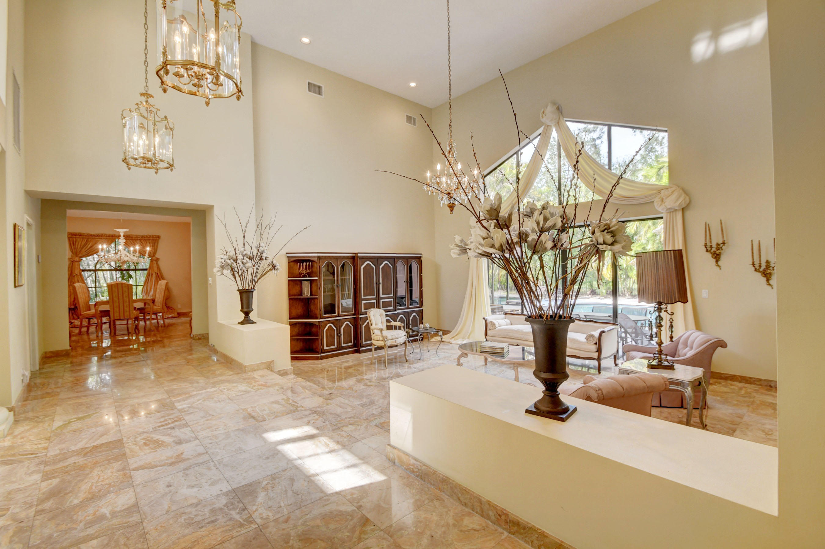 Elegant living at its best. As you enter, the imposing foyer leads to a beautiful open living area overlooking the spacious pool and patio area. Vaulted ceilings and marble floors flow through most of the living area while the bedrooms have the warmth of carpeting. The formal dining and living rooms lend themselves to elegant entertaining, while the casual family room and breakfast nook are perfect for relaxing at home!