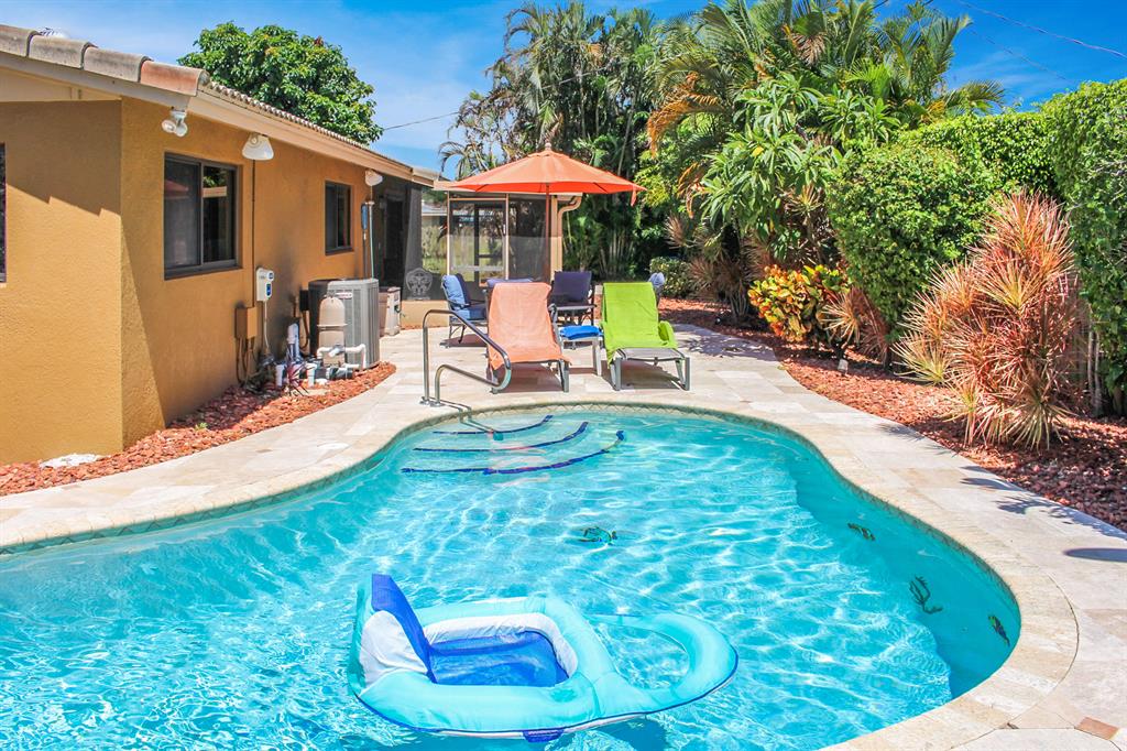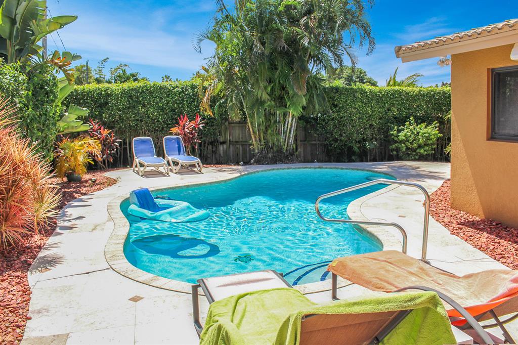 Prime Boca Raton east location is a real plus for this 4 bedroom pool home. The home is located on a corner lot with a private fenced yard with lush landscaping and a thriving avocado tree. This is your own piece of Florida paradise. The oversized pool and spacious patio offers all room to entertain and have a great time swimming, enjoying year round sun and BBQ's. There is a covered and screened patio too.The home has a a great layout with an open design and upgraded features including Saturnia Marble, updated master bath, 1 year new a/c, built in closets and granite in the kitchen. Storm preparation will be a breeze with impact windows. The home has been pre-wired for audio visual, is cable ready and has a room that is perfect for a home office. Be the lucky buyer for this pool home.