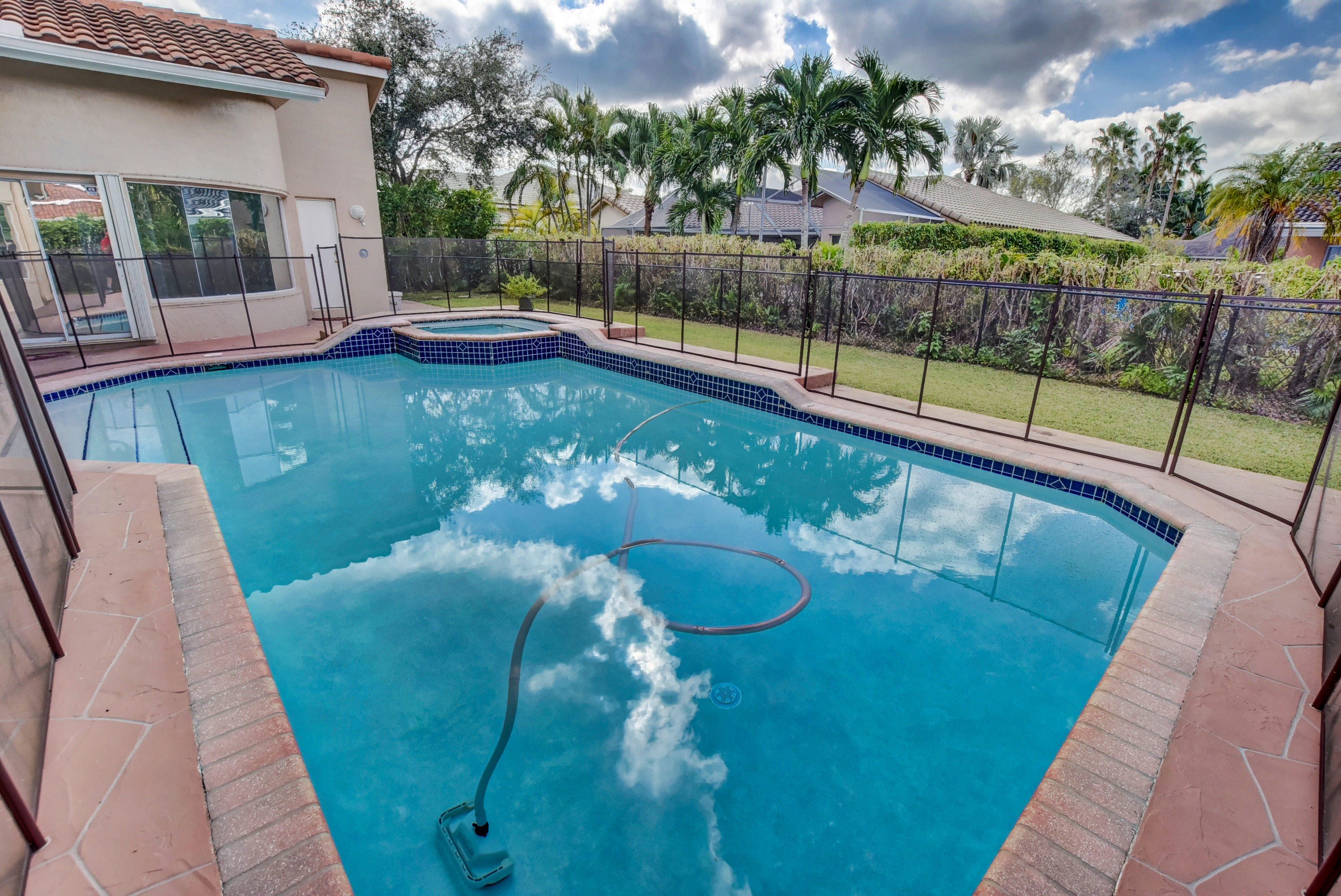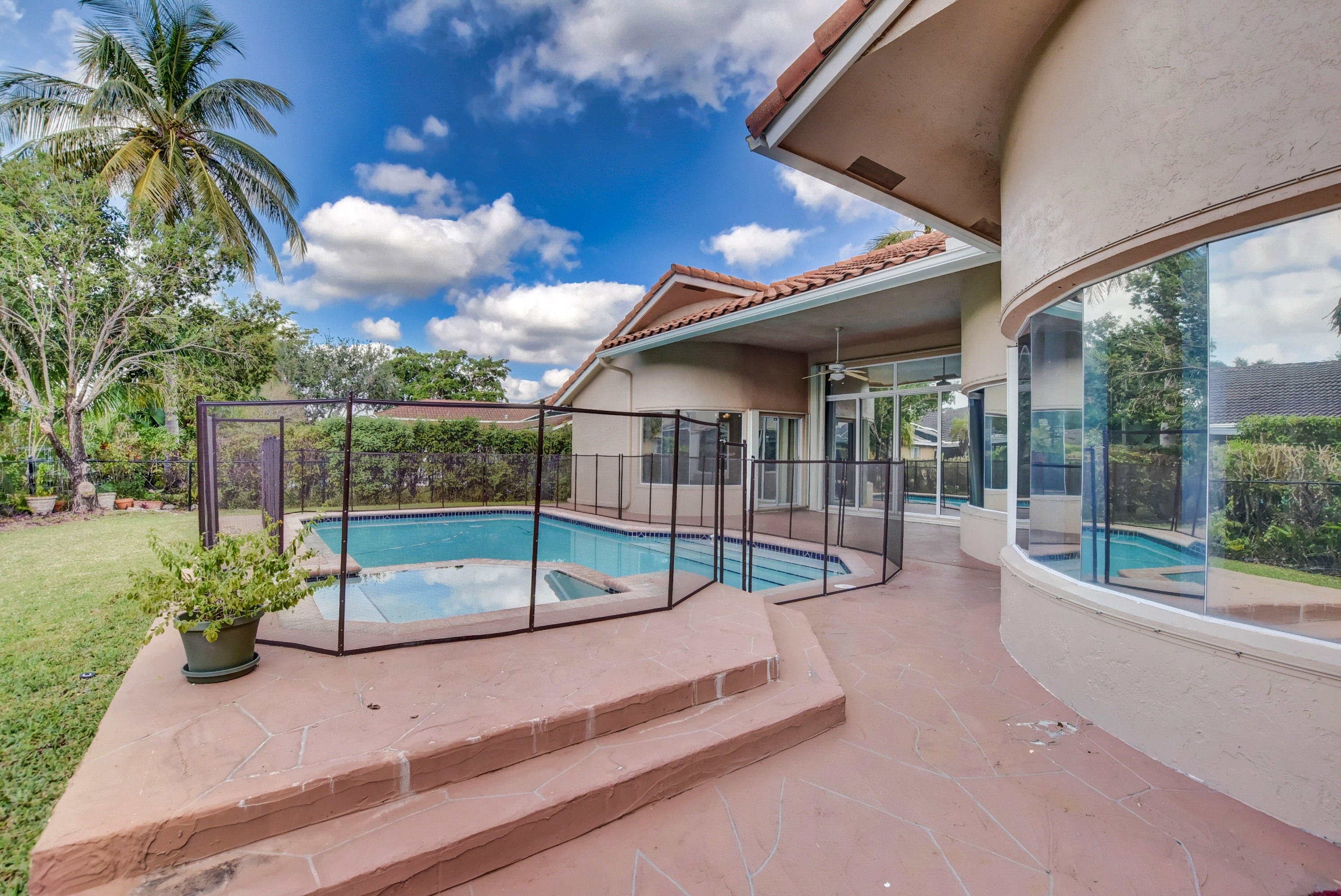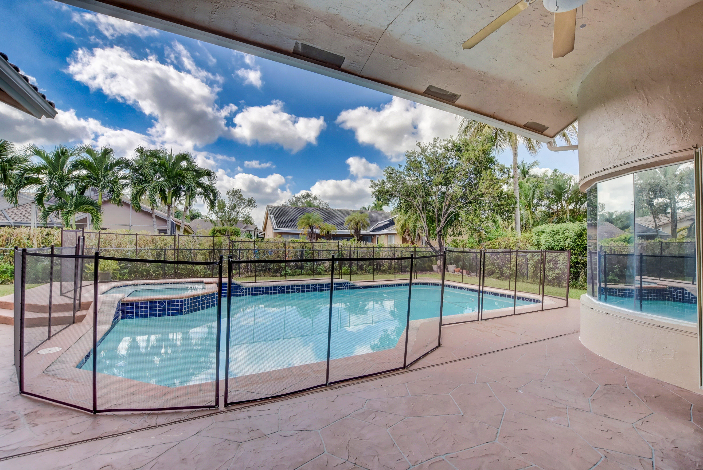 Immaculate 4 bedroom home with a pool on a quiet tree lined street with a very low HOA. A large circular driveway brings you a grand covered entrance into this beautiful open concept floor plan. The tall ceilings and large windows create a light and spacious feel. There is plenty of living space. This is a split floor plan with the large master suite to the right of the home which includes sliding glass doors leading you to the pool area. The kitchen has been completely renovated with stainless steel appliances including a wine fridge and granite counter tops, there is an eat in kitchen and living room that have access to a cabana bathroom which conveniently open directly to the backyard. Close to school, two parks, shops and restaurants, this is not to be missed!