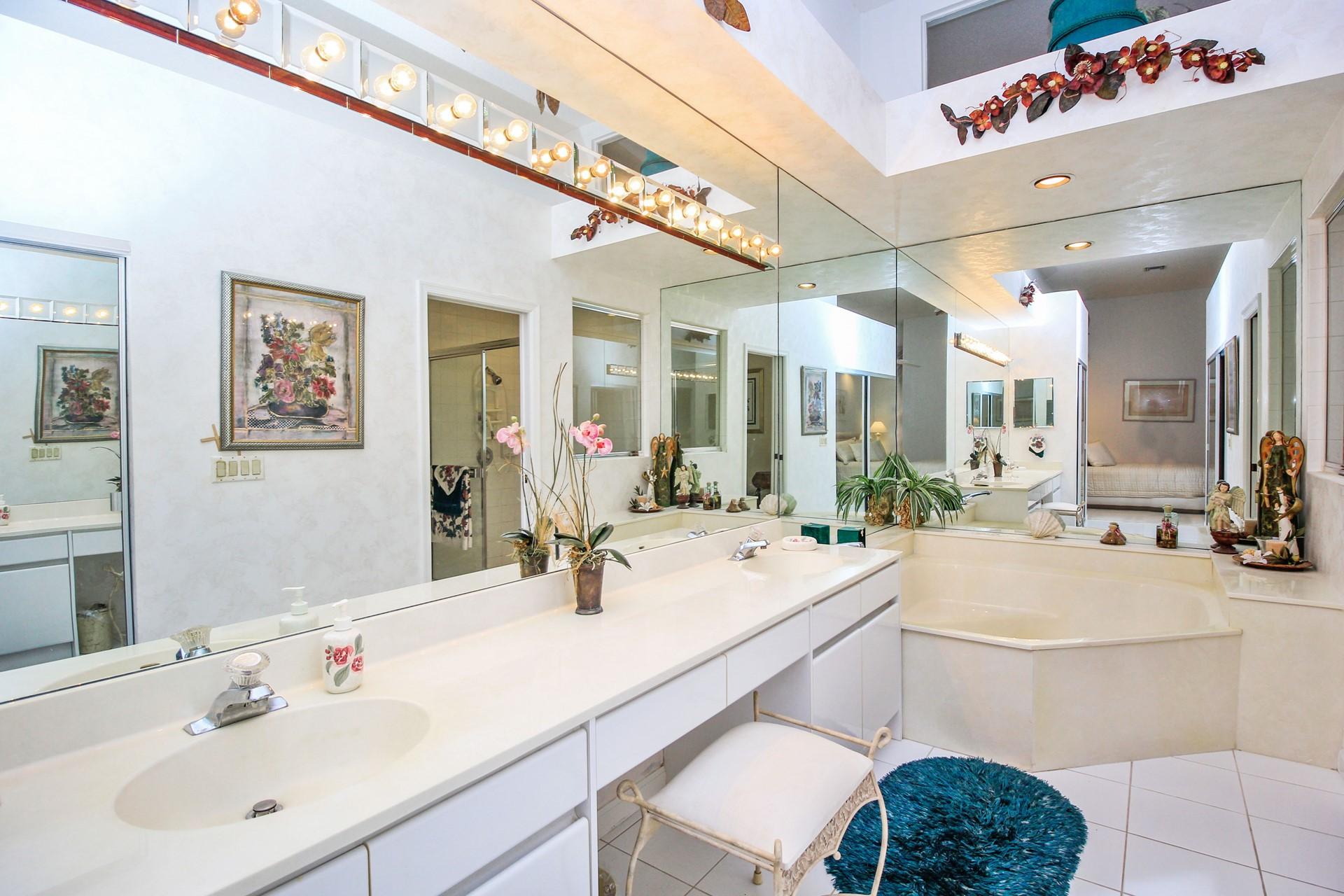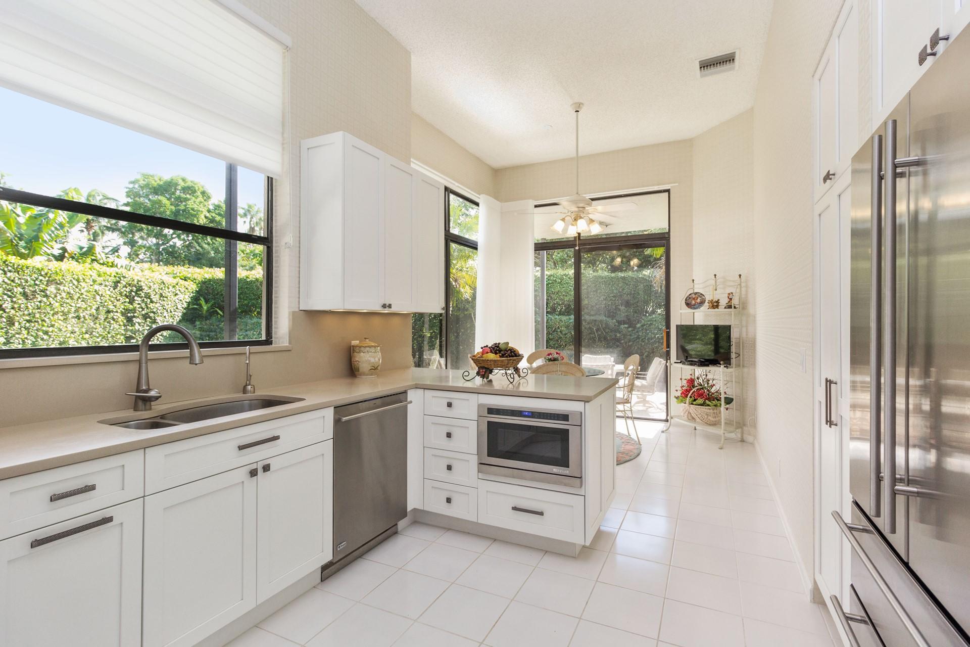 Highly motivated seller will consider all offers! Over $70,000 in KITCHEN & BATHROOMS renovations! Highest quality finishes and appliances. You will truly enjoy the bright and airy spaces of this lovely home. High ceilings and an abundance of floor to ceiling doors opening to the pool and patio flood this home with natural light. New kitchen for entertaining either in formal dining room or on the patio overlooking the pool and spa. Split bedroom plan with master bedroom with patio overlooking pool. The guest bedroom is ensuite with a newly renovated full bath and an additional 1/2 bathroom off the living area is also recently renovated. Broken Sound is a vibrant country club of golf, tennis or social memberships.