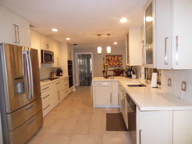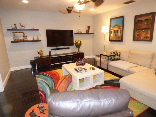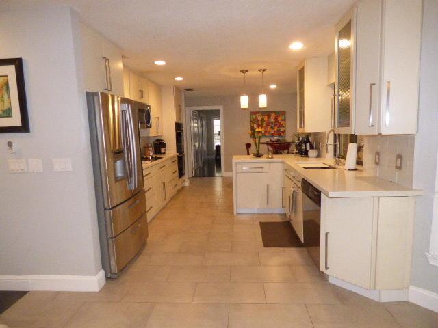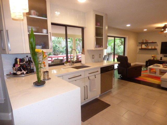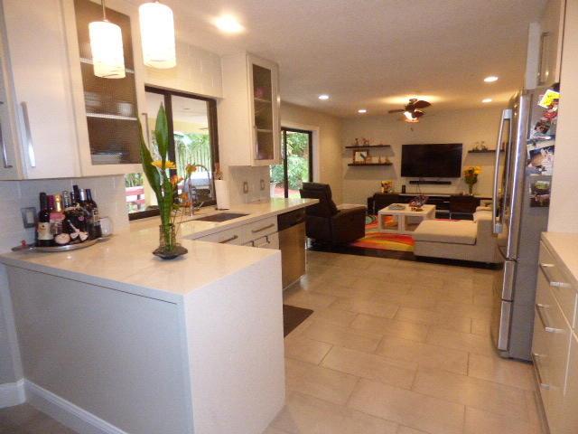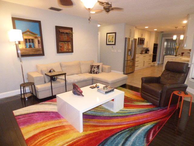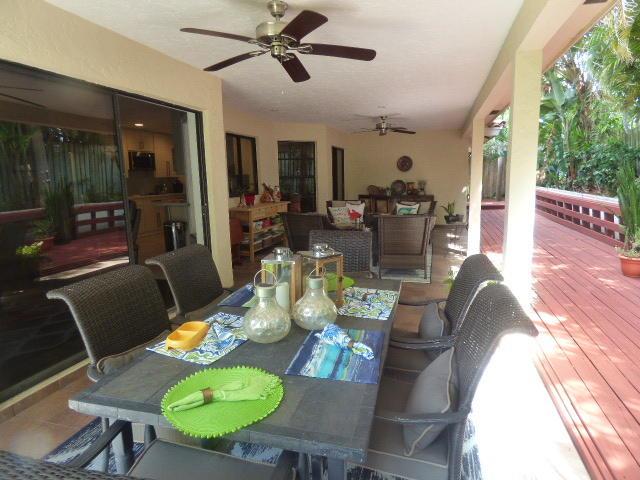 Gorgeous home located in the desirable community of Boca Chica. BRAND NEW ROOF/gutters installed in June 2018. Double entry doors lead you to a large living/dining room combination. You will love the updated eat-in kitchen with s/s appliances, double ovens, glass backplash, quartz counters with waterfall edge and extra deep sink. There are beautiful hardwood floors throughout, except for kitchen/bathrooms. Next to the kitchen is a great size family room. Both bathrooms have also been updated. Master bath has Italian cabinetry and glass shower enclosure Back of the house has 3 sets of sliding doors which lead you to a huge (30'x13') lanai perfect for entertaining. Past the lanai is a large wood deck and to the side there's a large grassy area big enough for a pool. Click on more...